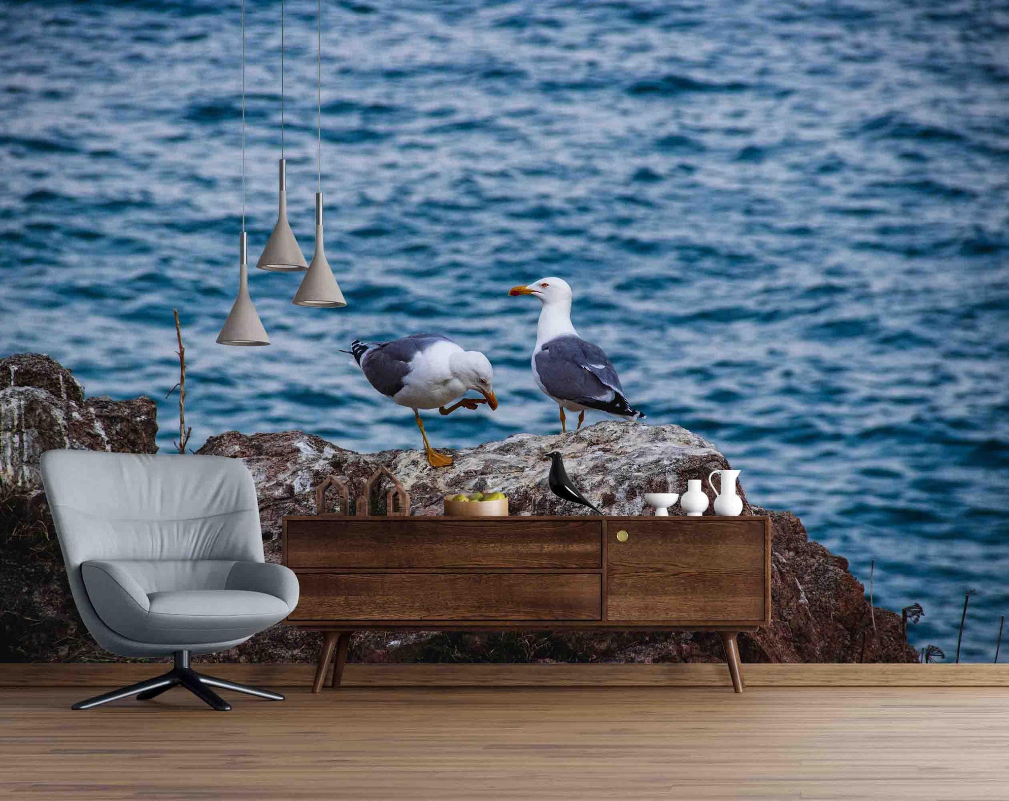 3D Blue Sea Birds Wall Mural Wallpa 17