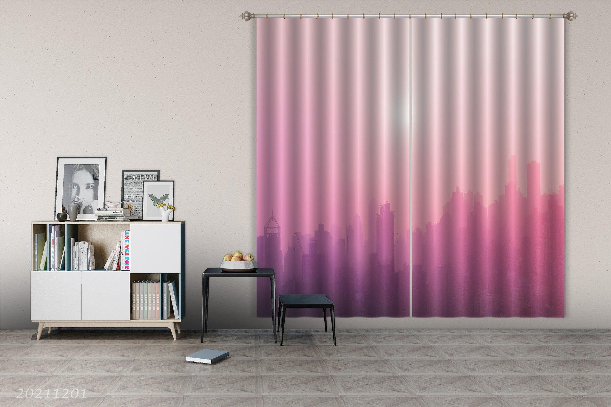 3D Abstract City Building Pink Curtains and Drapes LLL 121