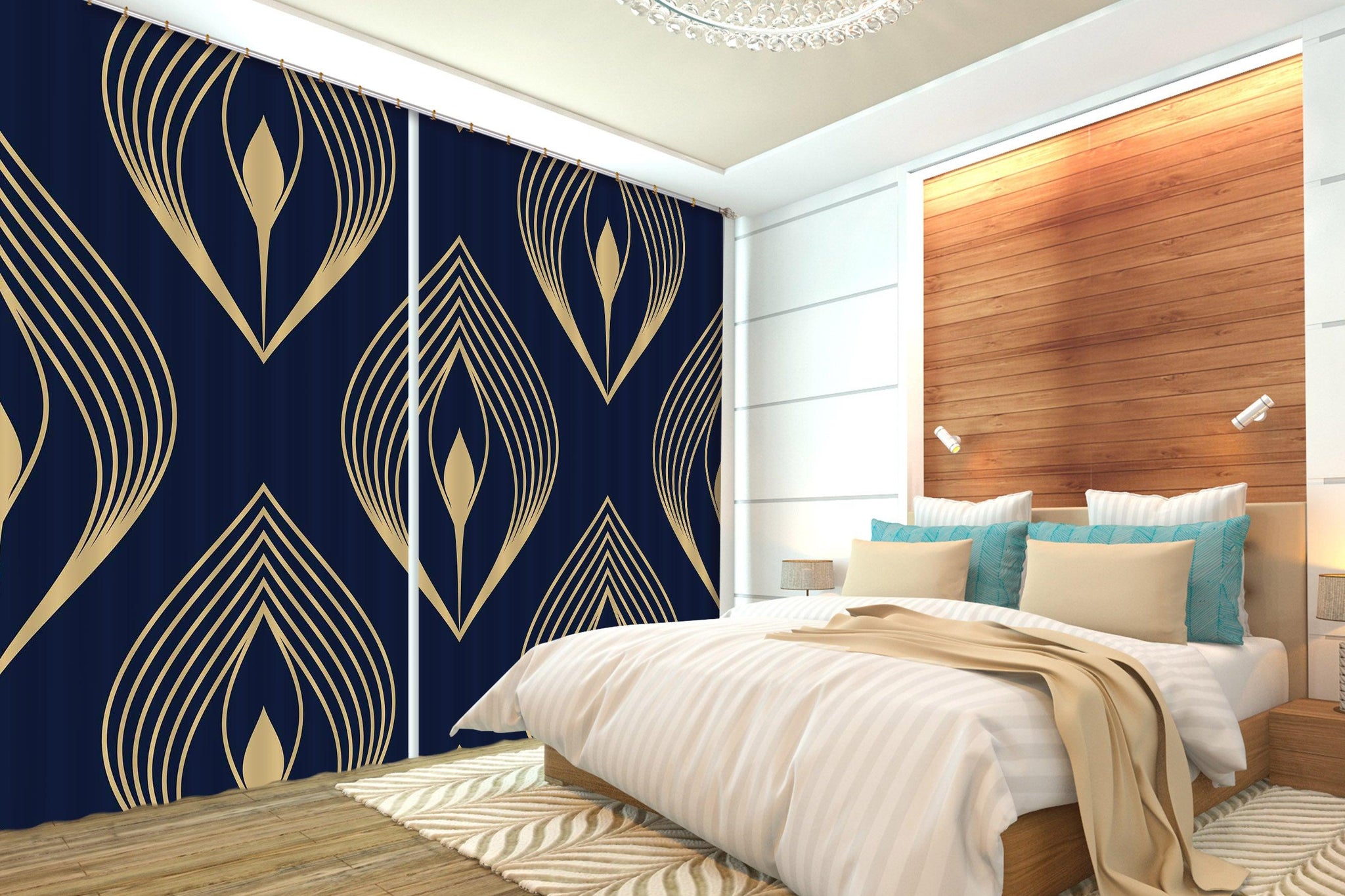 3D Abstract Golden Geometry Curtains and Drapes LQH A518