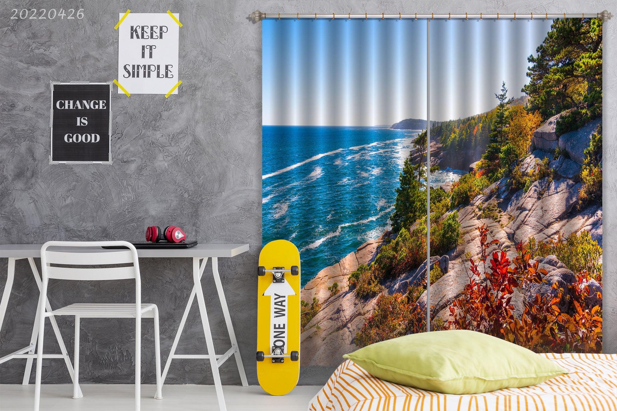 3D Landscape Mountain Rock Woods Blue Sea Curtains and Drapes GD 4903