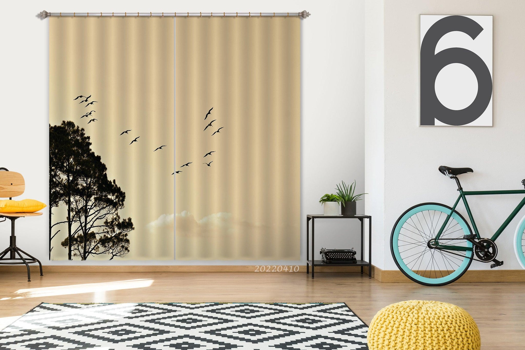 3D Landscape Nature Branch Silhouette Bird Curtains and Drapes GD 3901