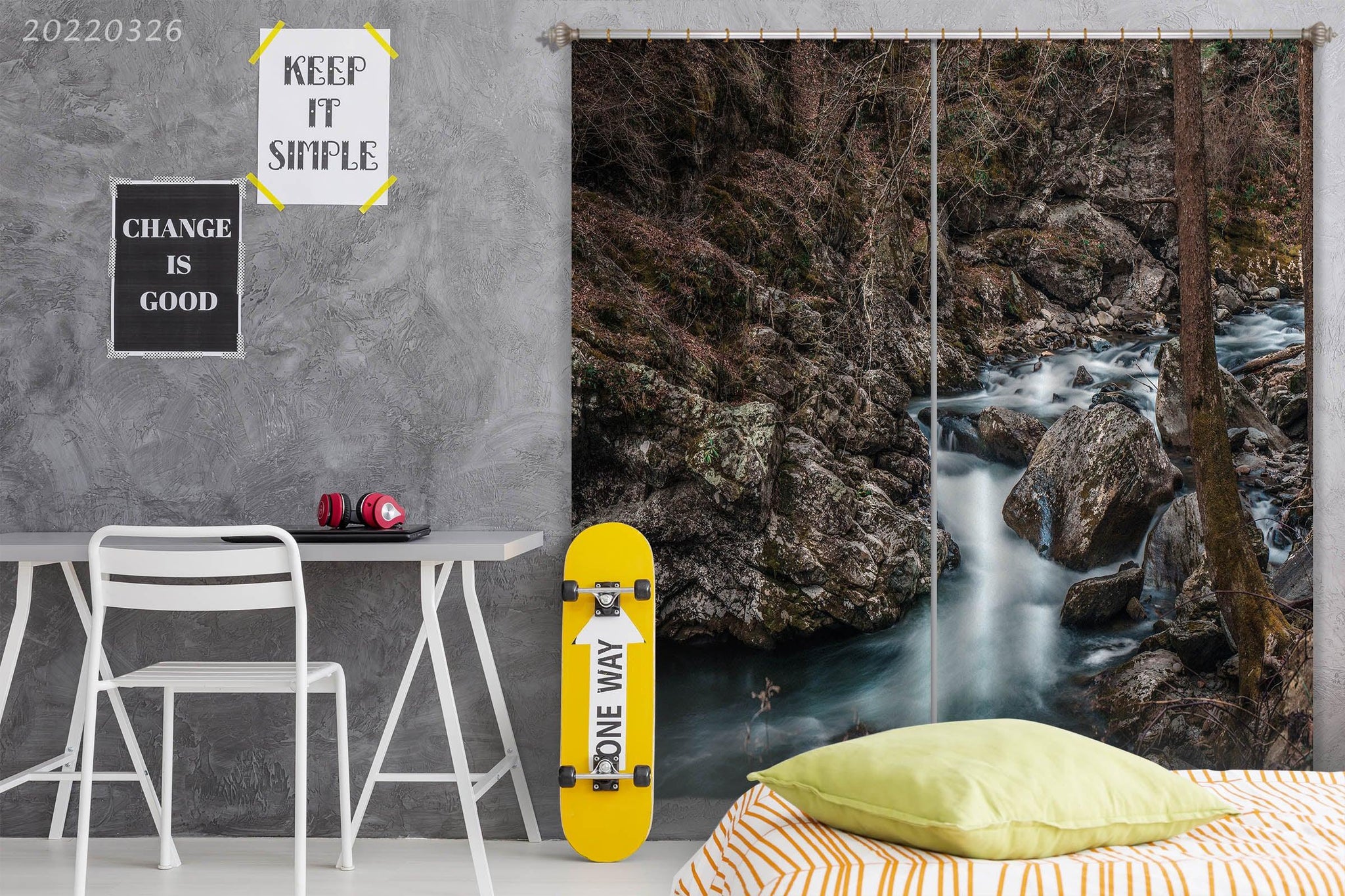 3D Landscape Reef Creek Tree Curtains and Drapes GD 2973