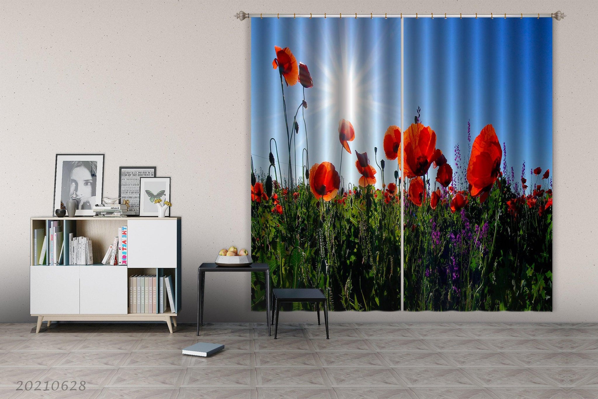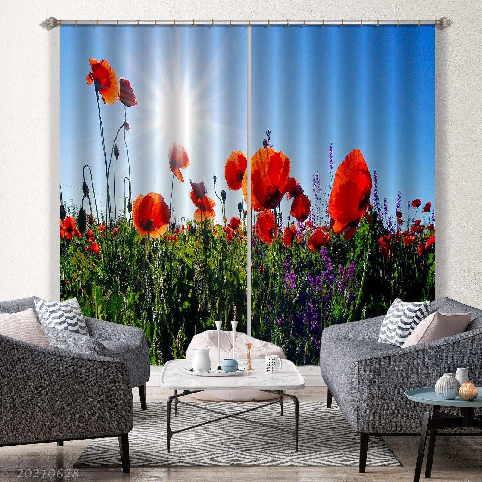 3D Sky Sunshine Red Poppy Flower Curtains and Drapes LQH 199