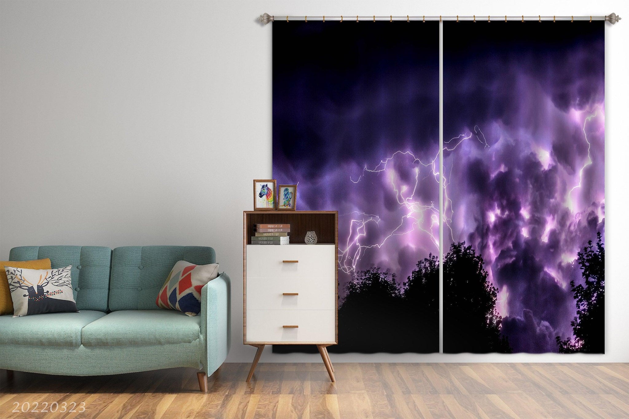3D Wood Sky Dark Cloud Lightning Curtains and Drapes GD 2665