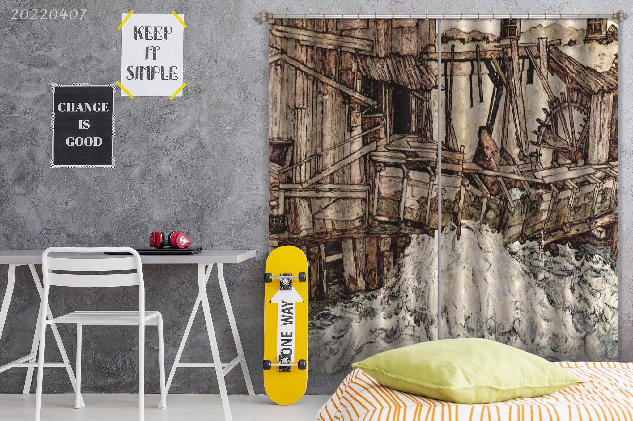 3D Wooden Waterwheel Artwork Painting Curtains and Drapes GD 3515