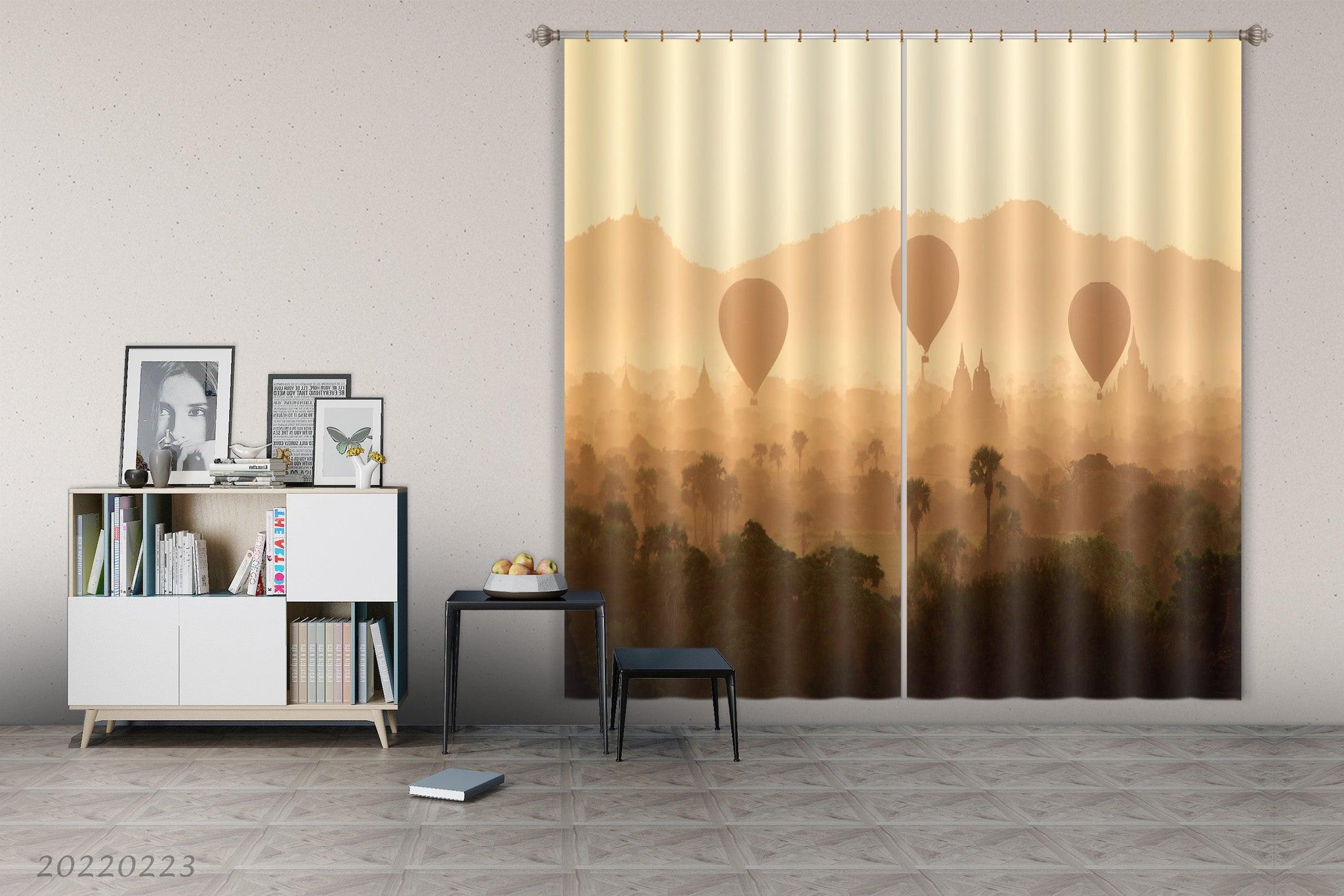 3D Woods Castle Hot Air Balloon Sand Scenery Curtains and Drapes GD 2782