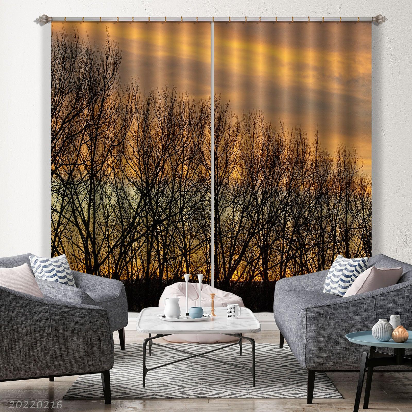 3D Woods Golden Sky Cloud Curtains and Drapes GD 2223