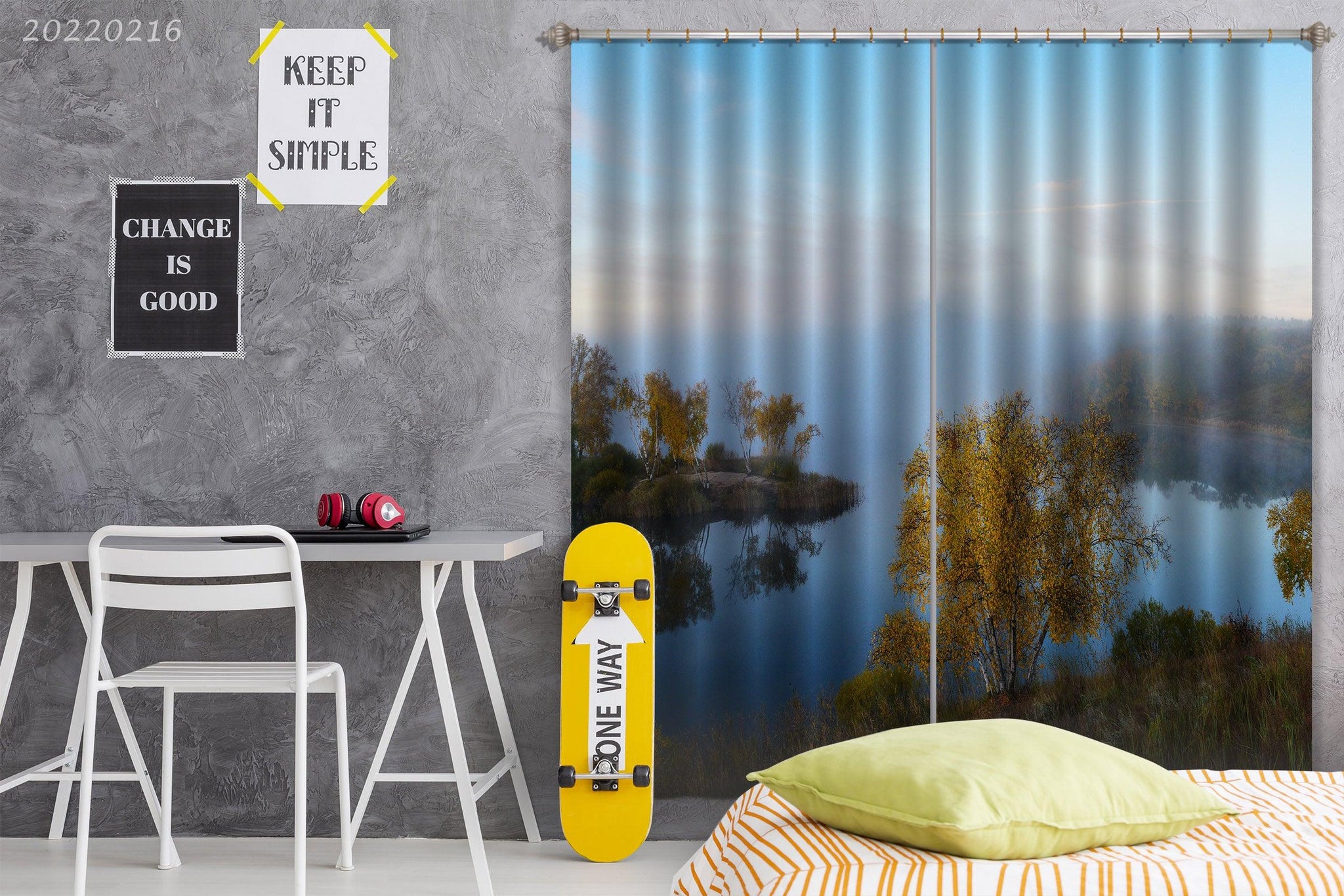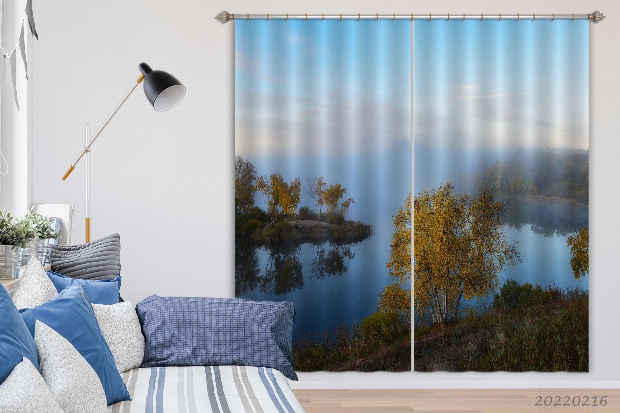 3D Woods Lake Reflection Scenery Curtains and Drapes GD 1961