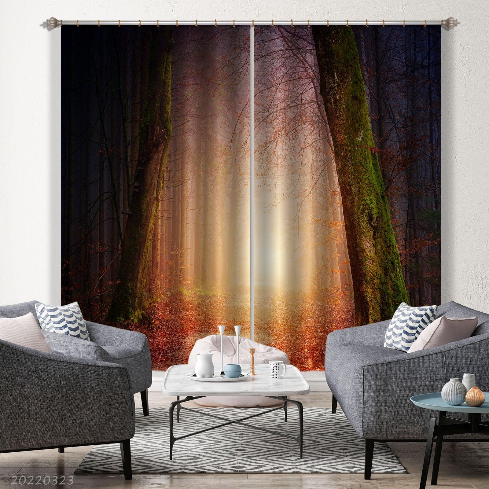 3D Woods Morning Sunrise Scenery Curtains and Drapes GD 2660