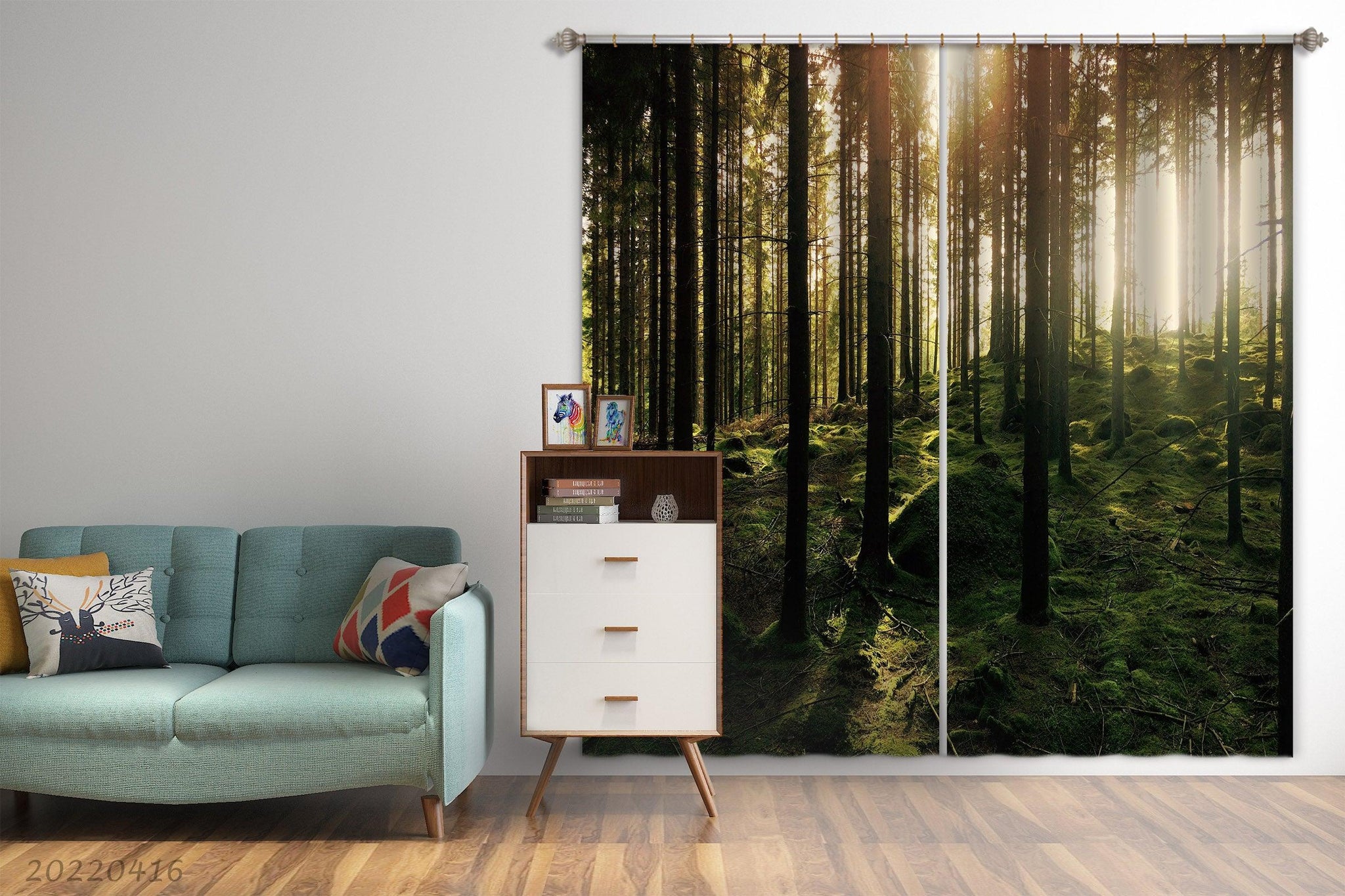 3D Woods Tree Sunbeam Green Vegetation Curtains and Drapes GD 4497