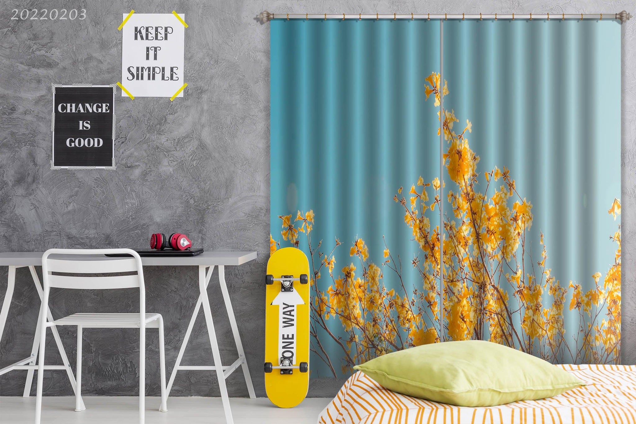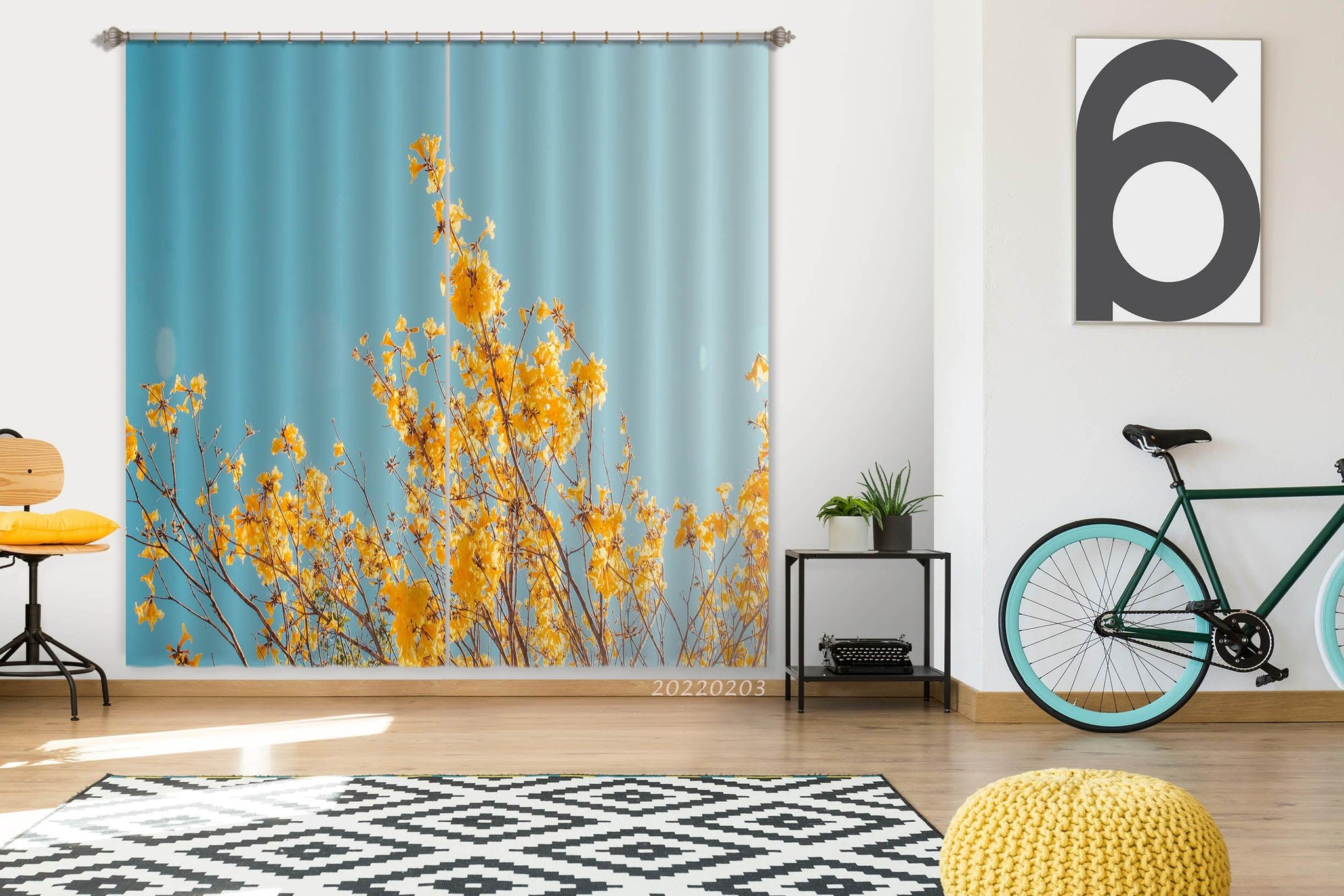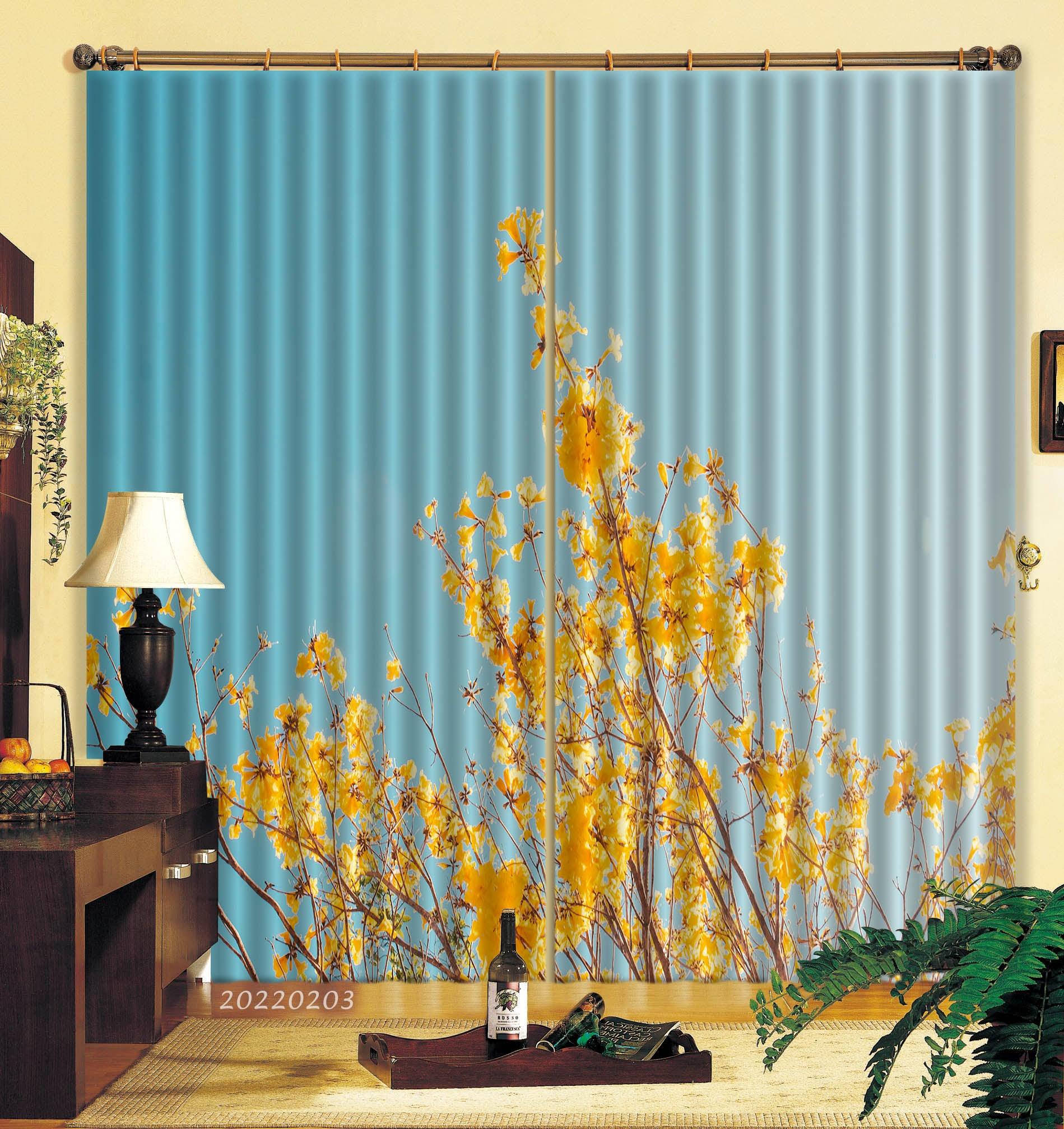 3D Yellow Spring Flower Curtains and Drapes GD 1058