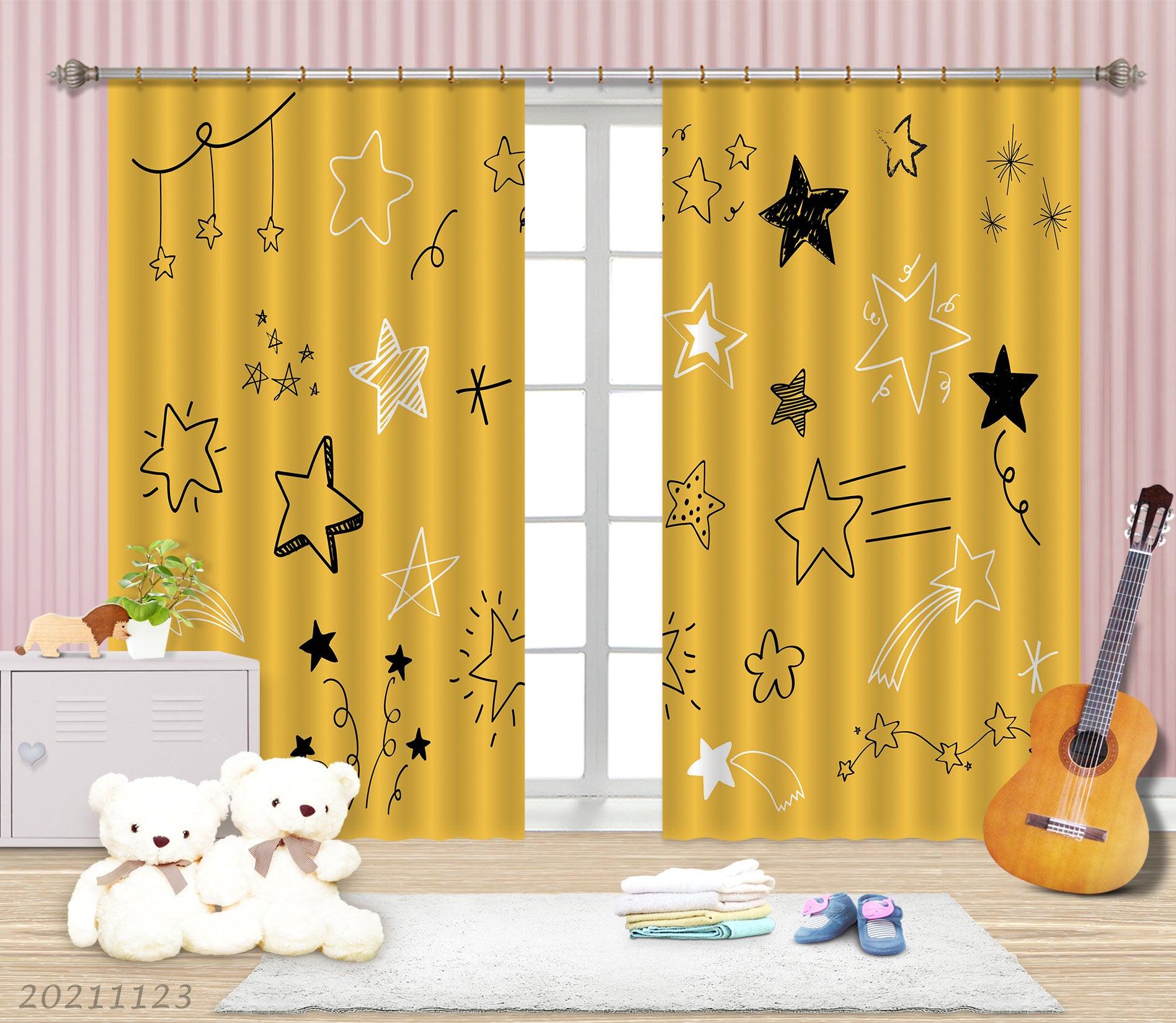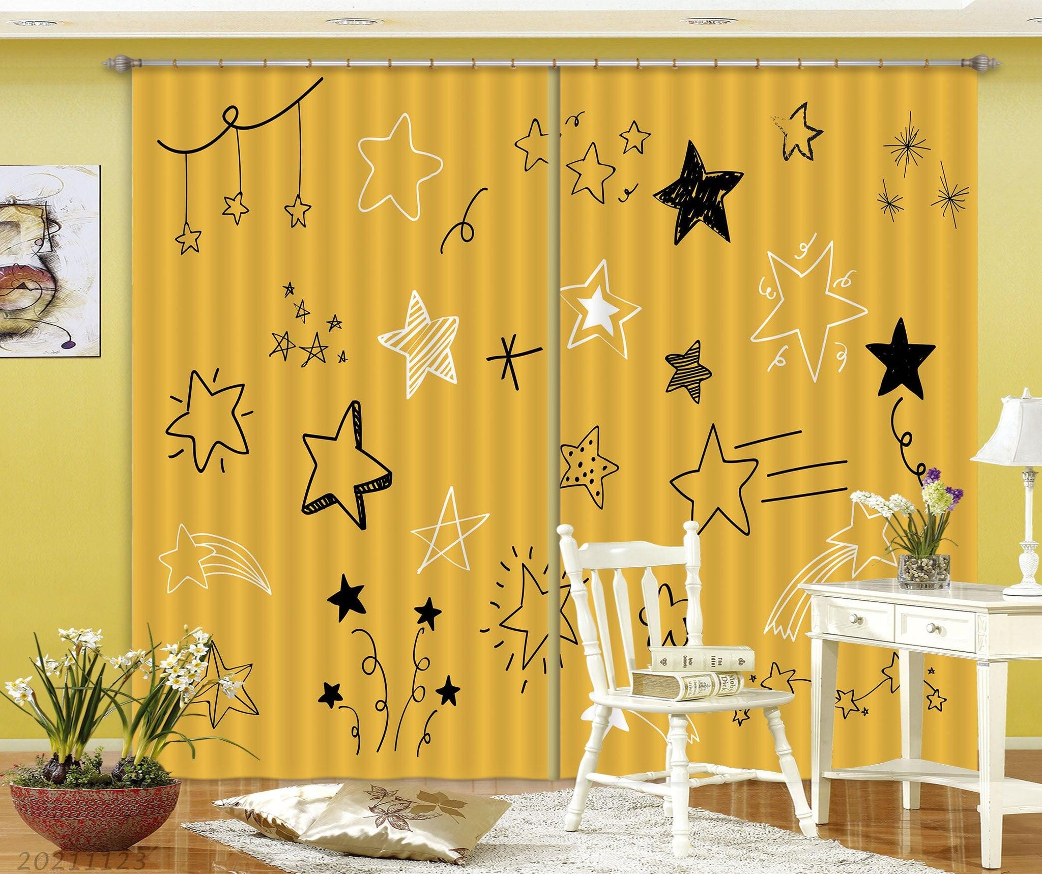 3D Yellow Star Pattern Curtains and Drapes LQH 75