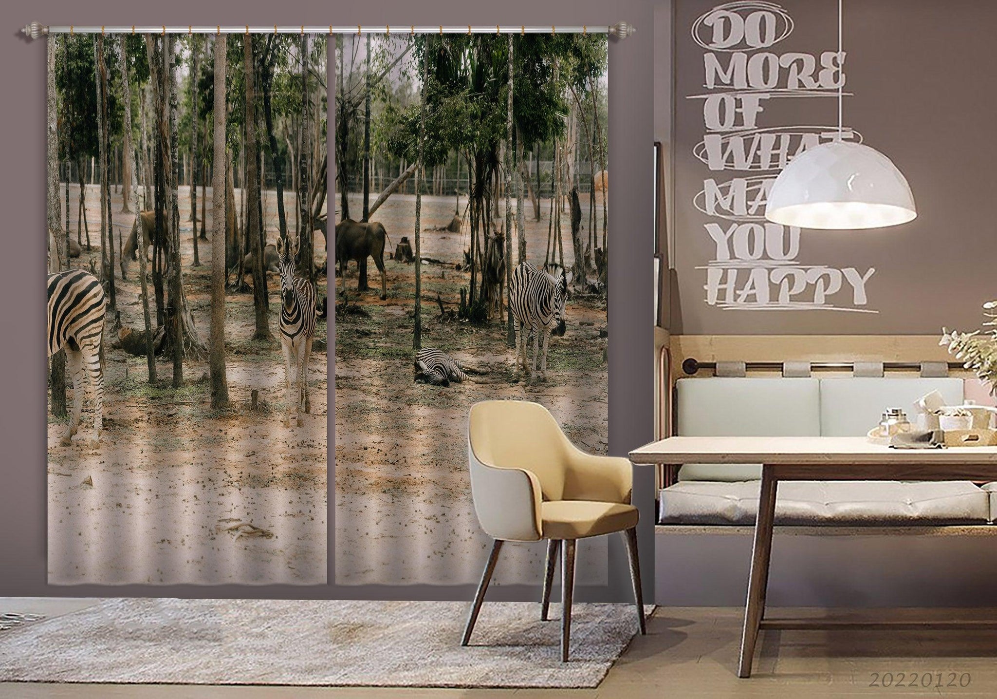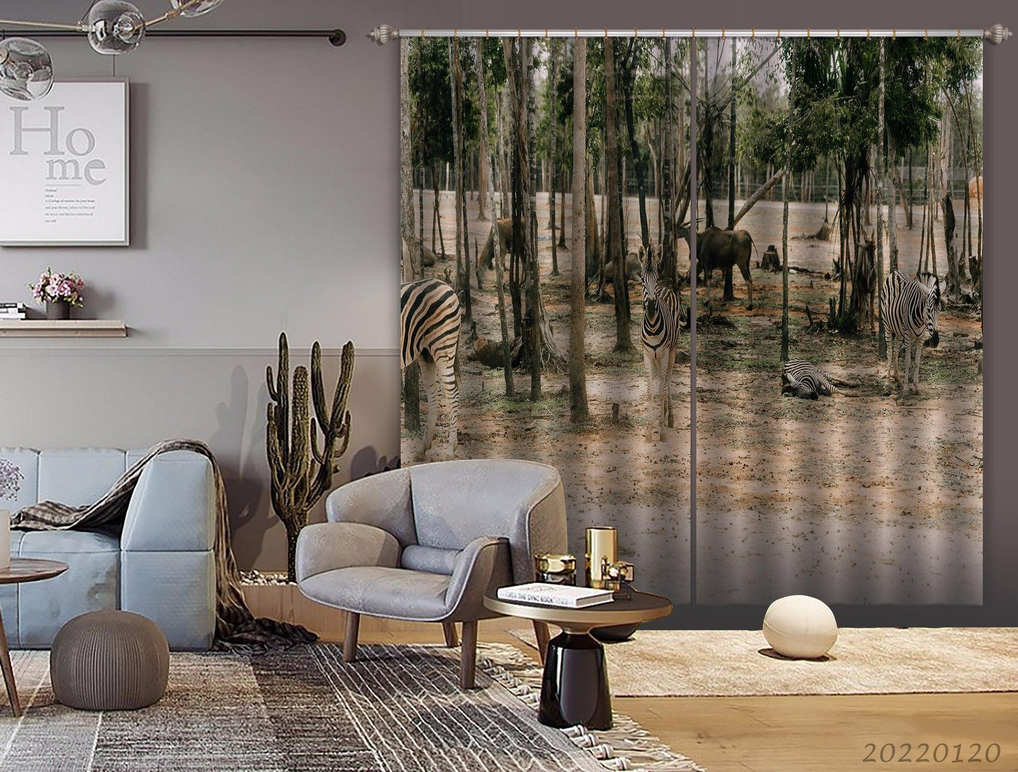 3D Zoo Zebra Trees Pattern Curtains and Drapes GD 1919