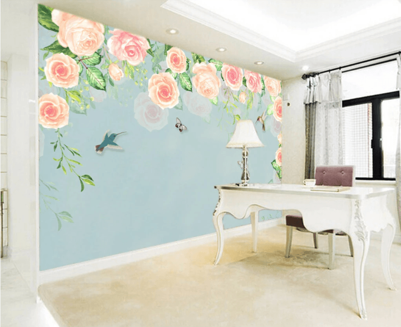 3D Blue Flower Bird Wall Mural Wallpaper 1787