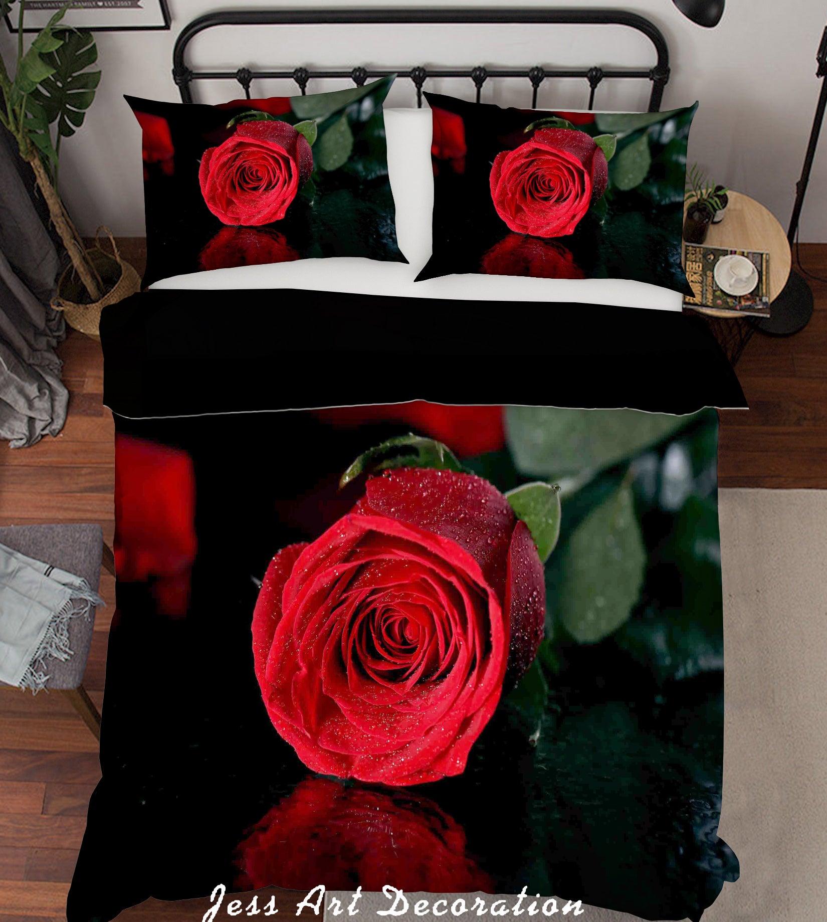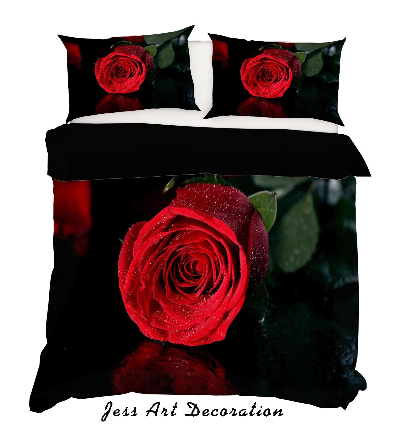 3D Embossed Rose Red Floral Plant Quilt Cover Set Bedding Set Duvet Cover Pillowcases LXL