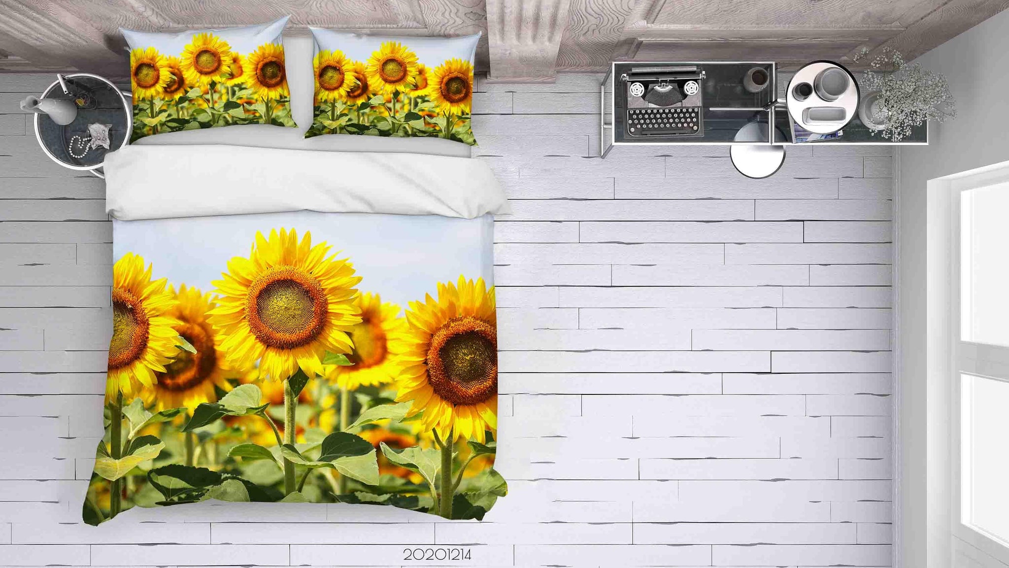 3D Sun Flower Yellow Floral Quilt Cover Set Bedding Set Duvet Cover Pillowcases LXL