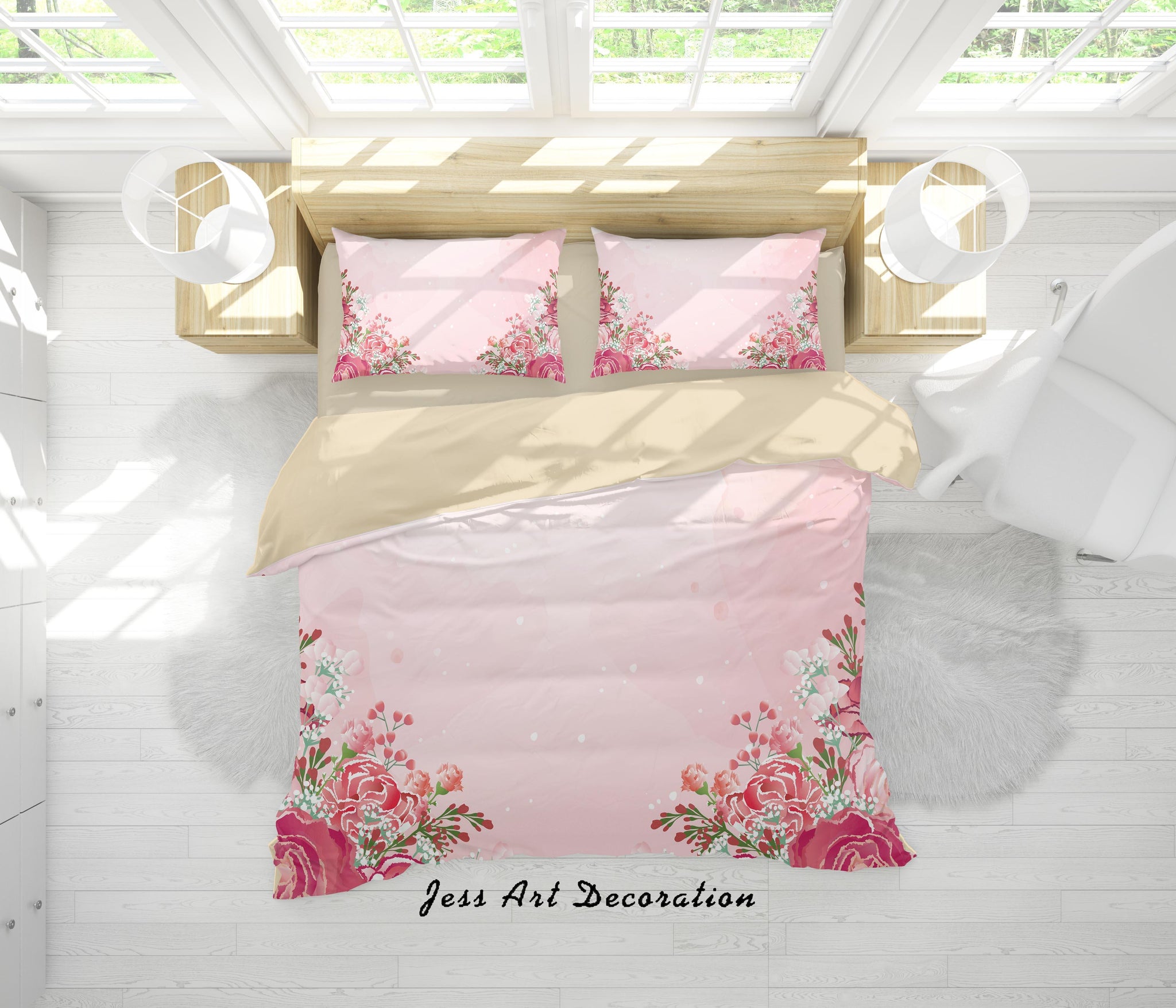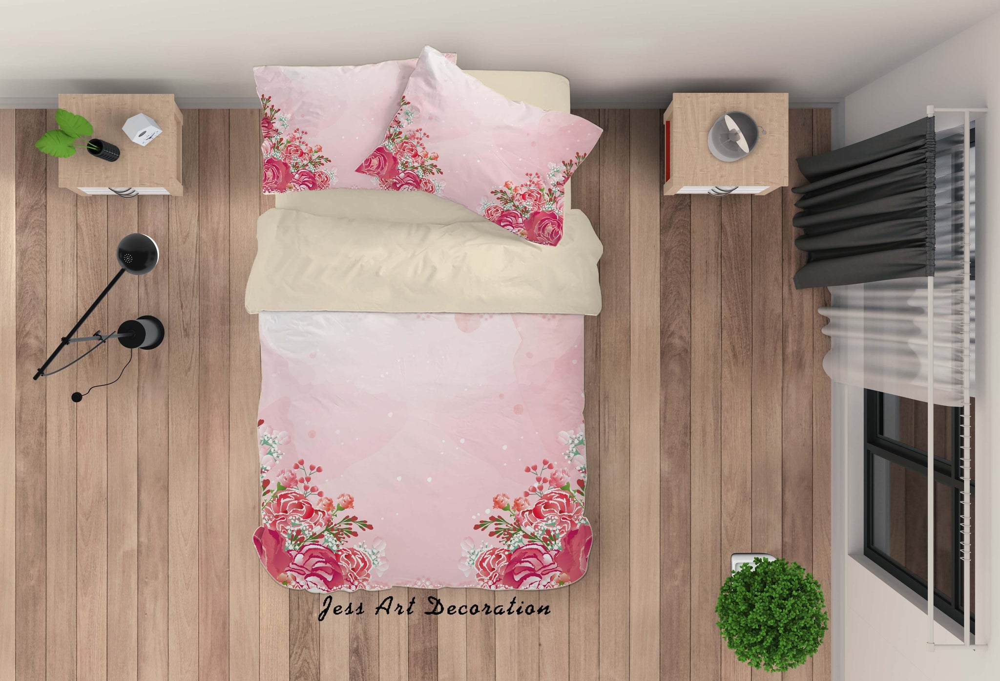 3D Watercolor Pink Flowers Quilt Cover Set Bedding Set Duvet Cover Pillowcases A324 LQH