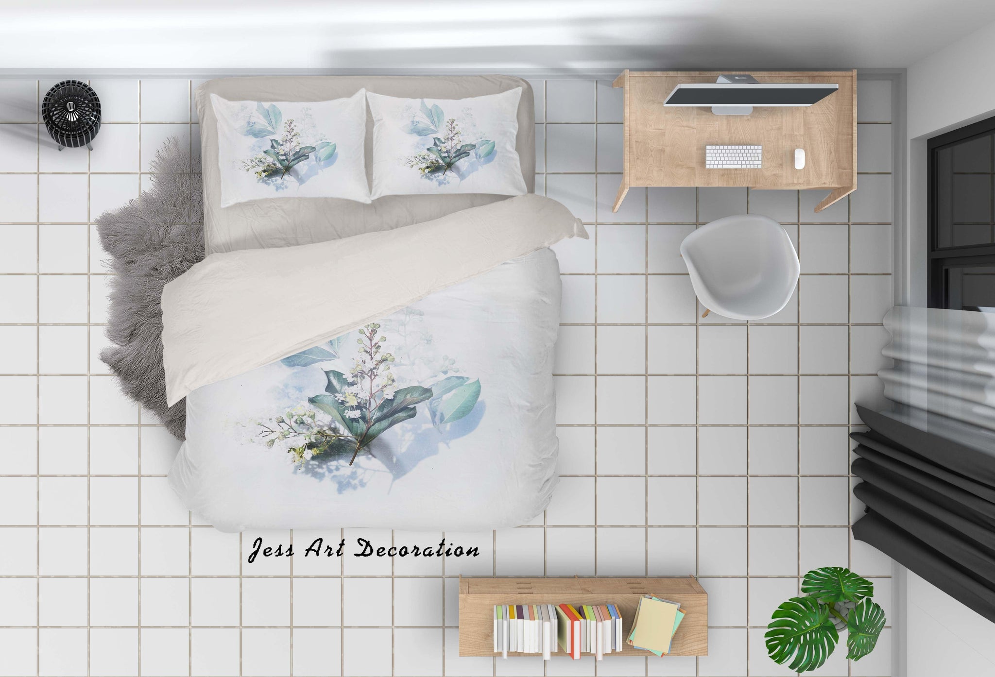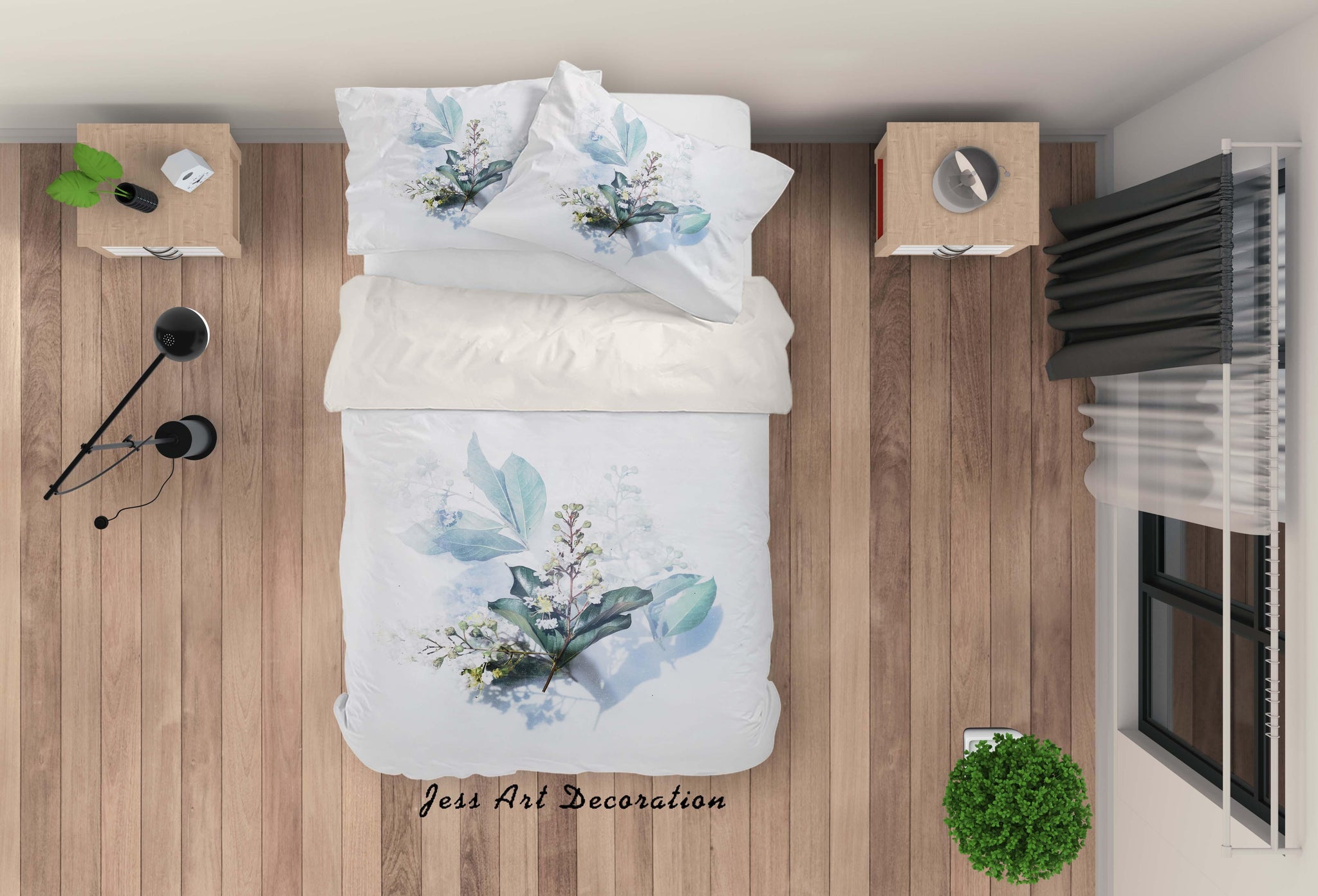 3D White Branches Leaves Quilt Cover Set Bedding Set Duvet Cover Pillowcases LQH A100