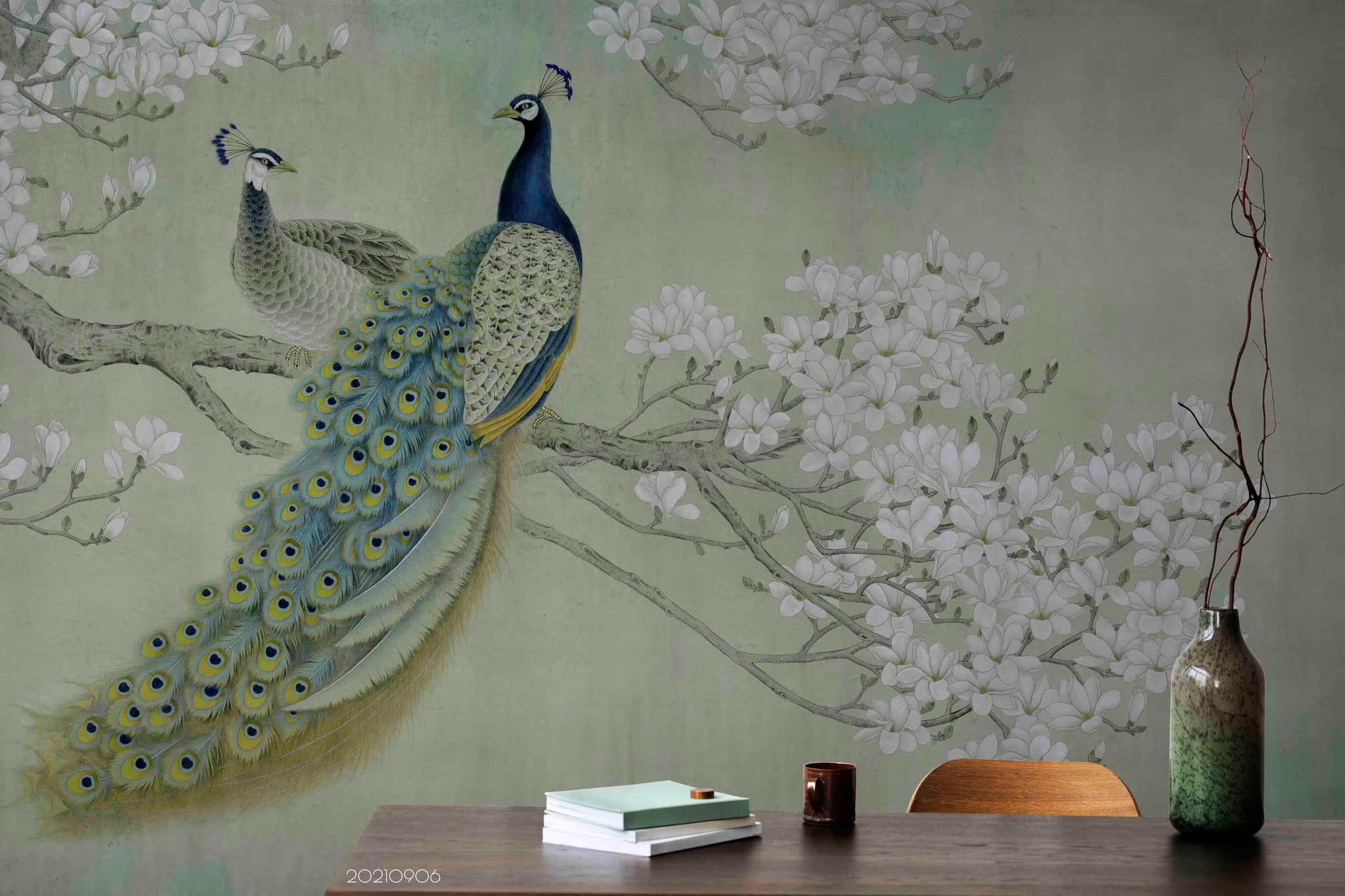 3D Animal Peacock Floral Wall Mural Wallpaper LQH 596