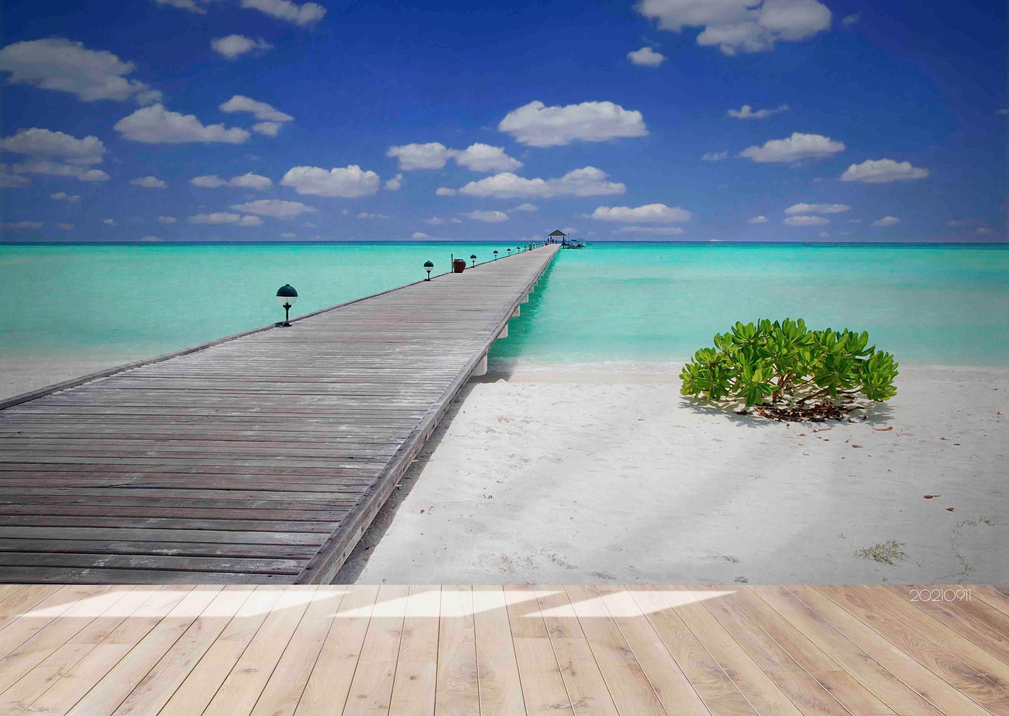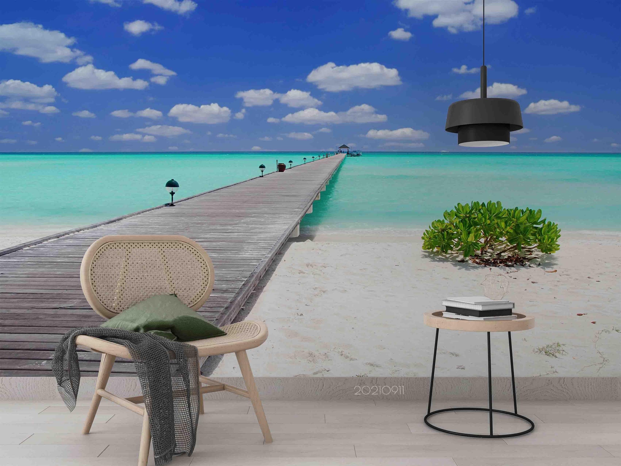 3D Bridge Blue Sky Cloud Sea Landscape Wall Mural Wallpaper LQH 828