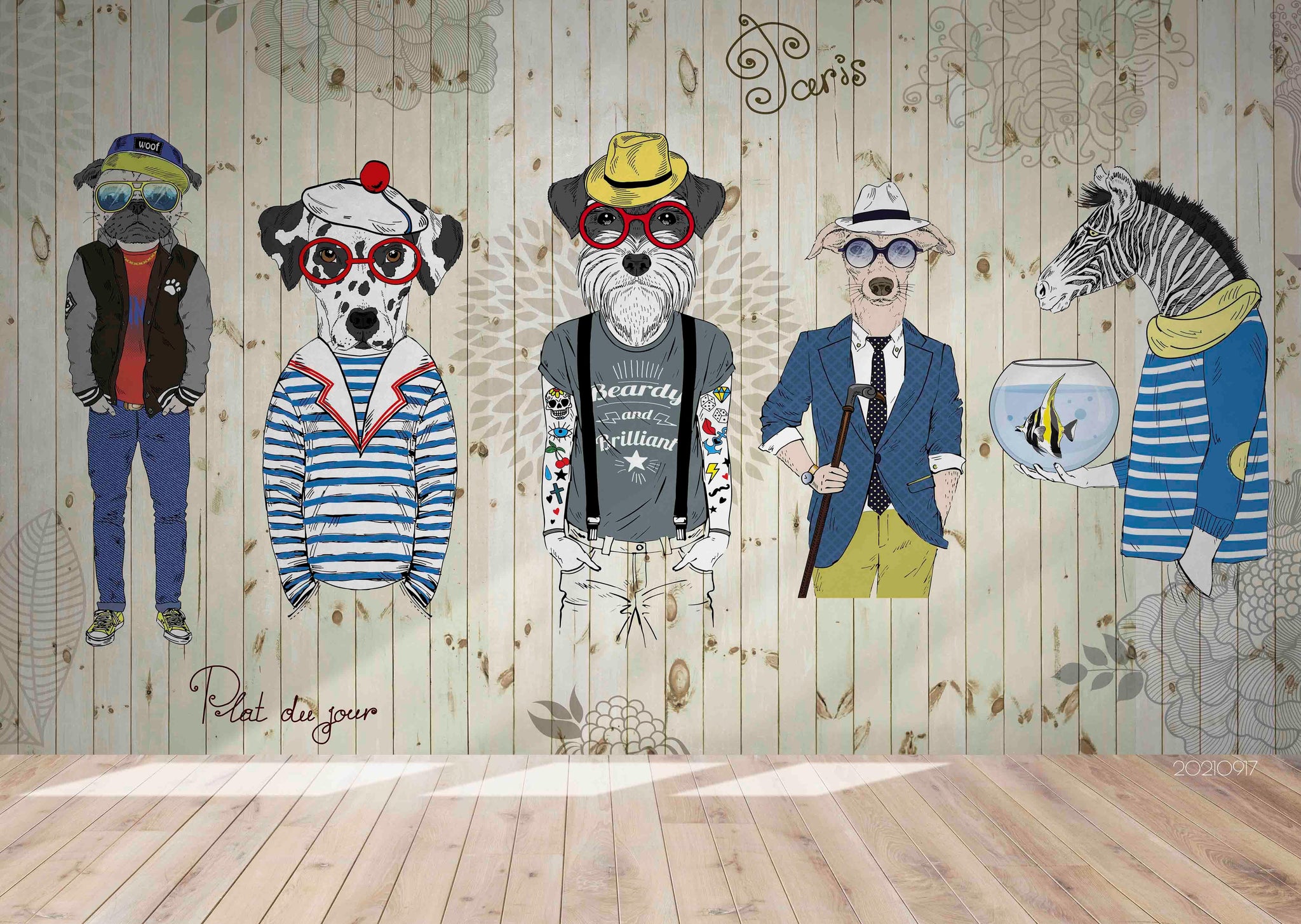 3D Fashion Animal Wood Board Wall Mural Wallpaper LQH 32