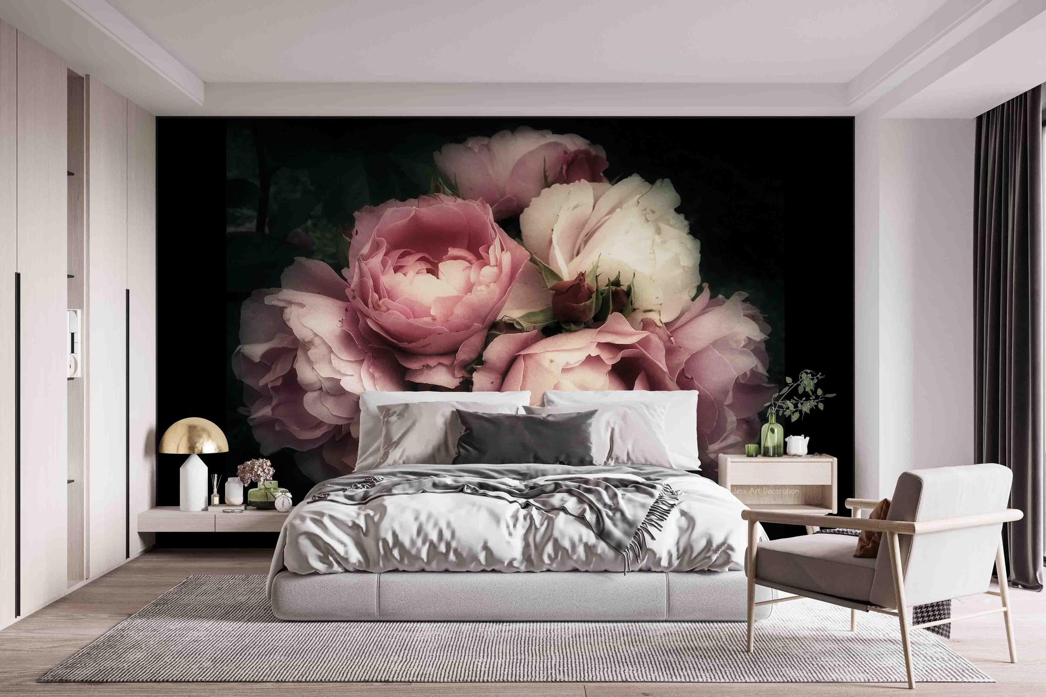 3D Pink Rose Black Background Wall Mural Wallpaper GD 2523