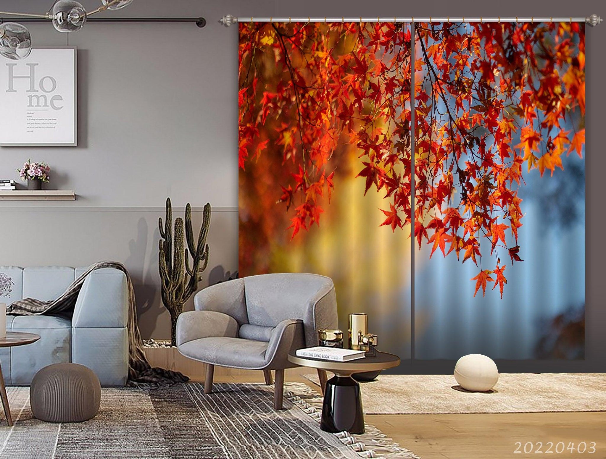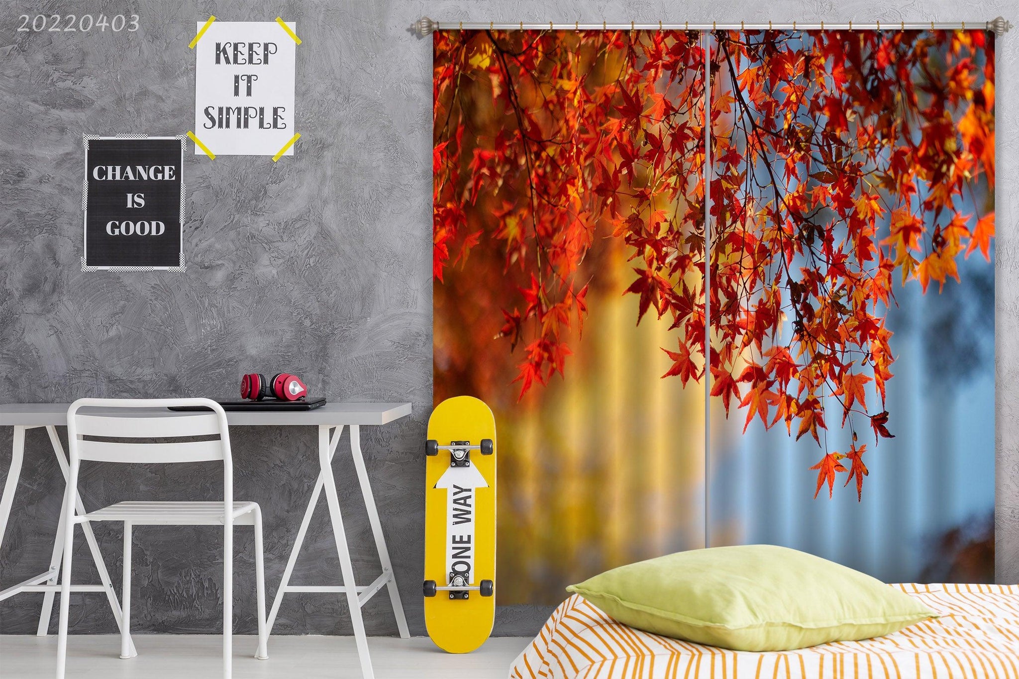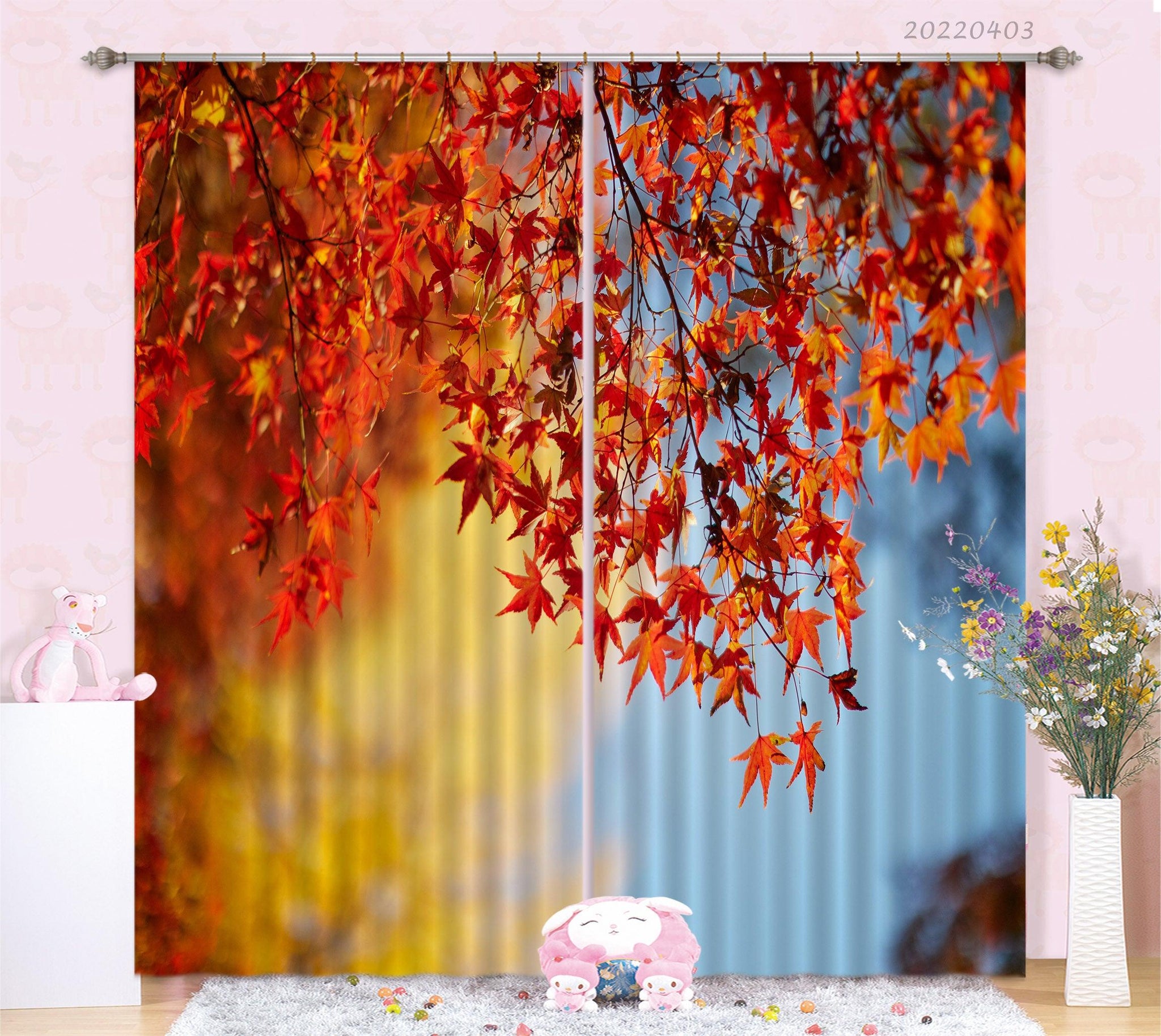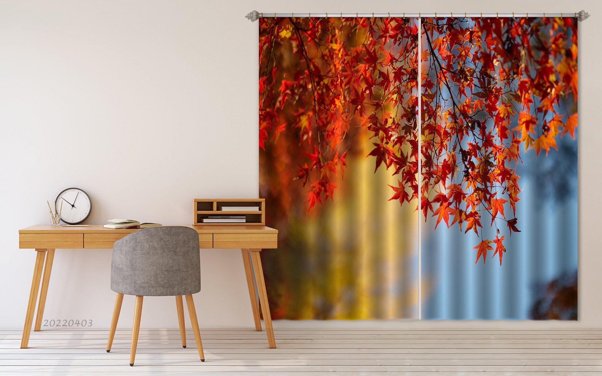 3D Autumn Red Maple Leaf Scenery Curtains and Drapes GD 3398