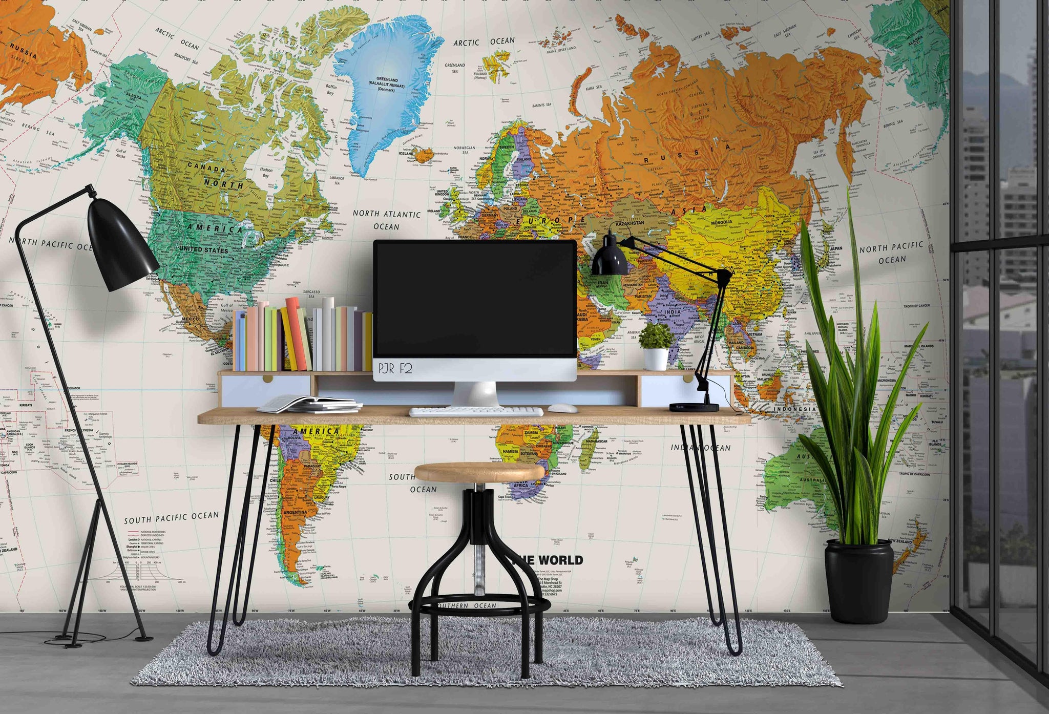 3D Colourful World Map Wall Mural Wallpaper WJ 2174