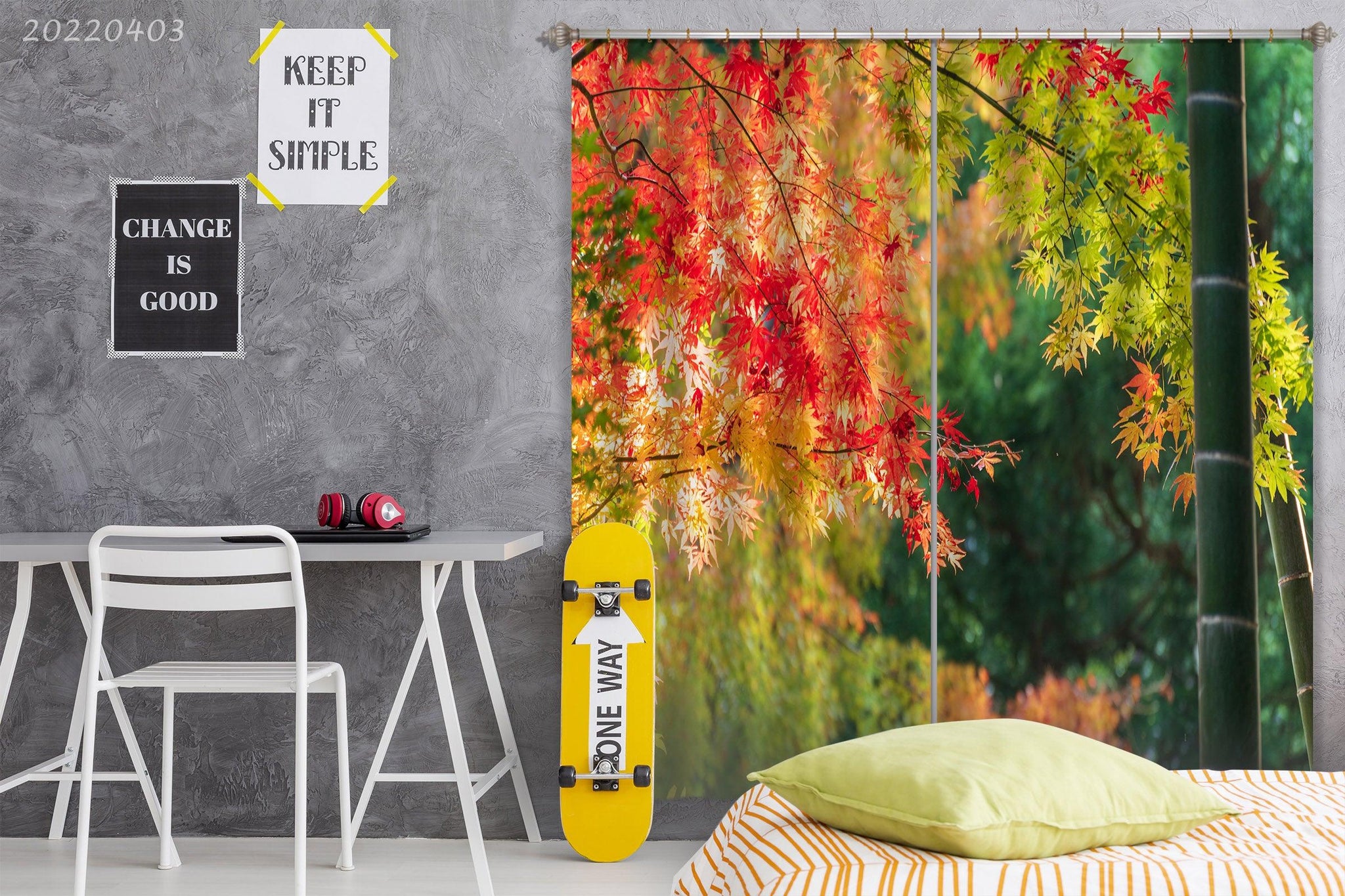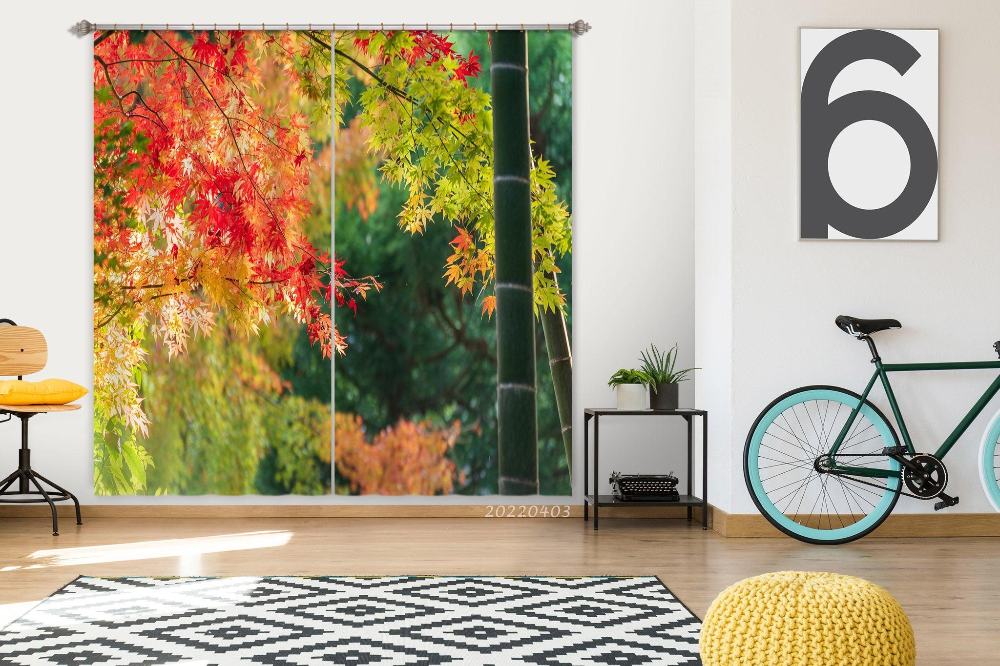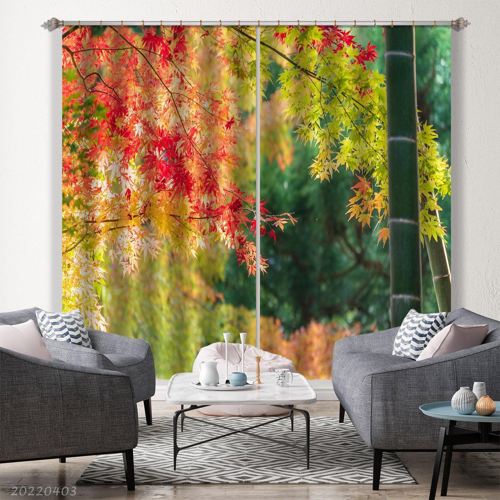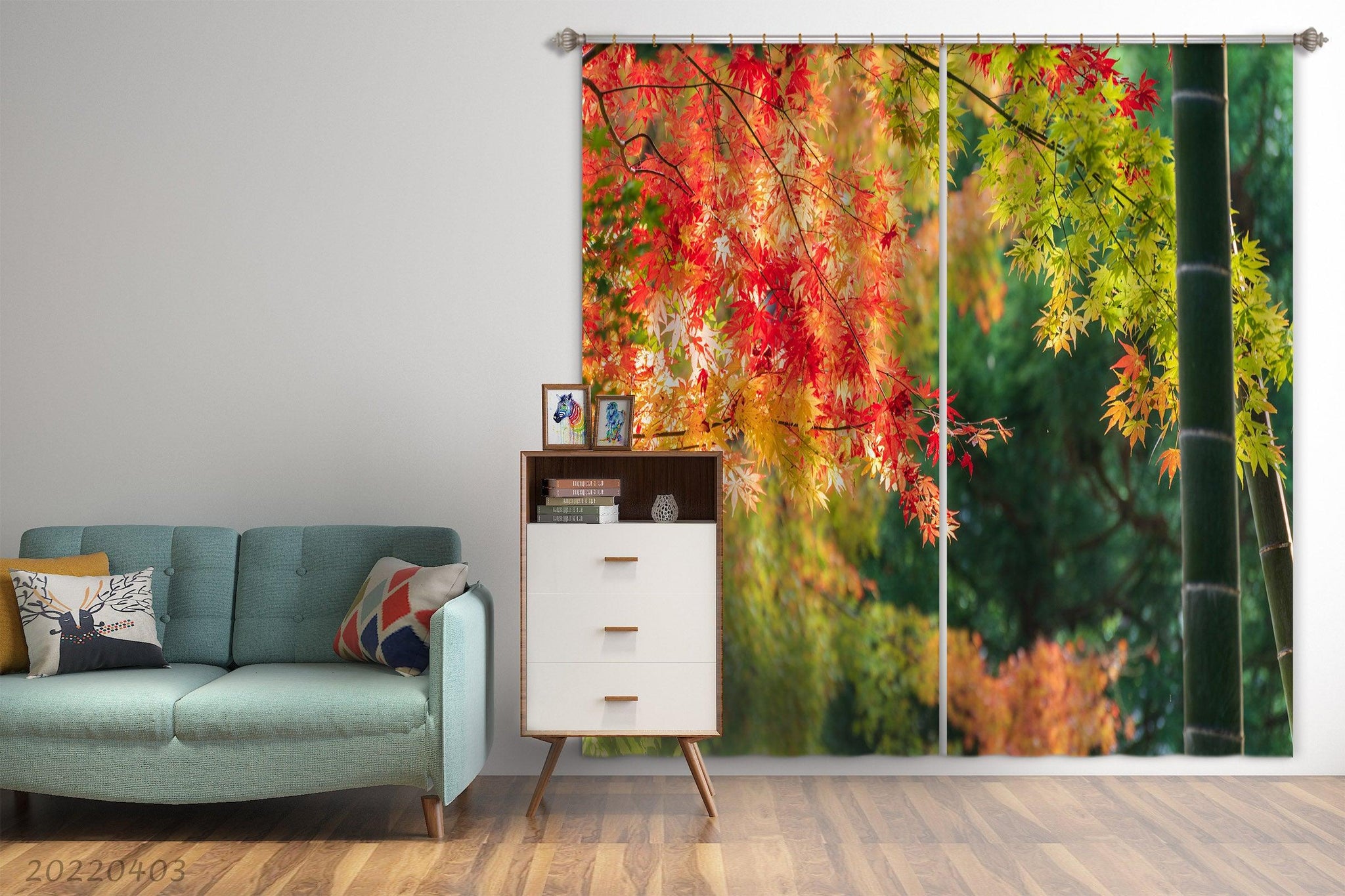 3D Landscape Maple Red Green Leaf Curtains and Drapes GD 3212
