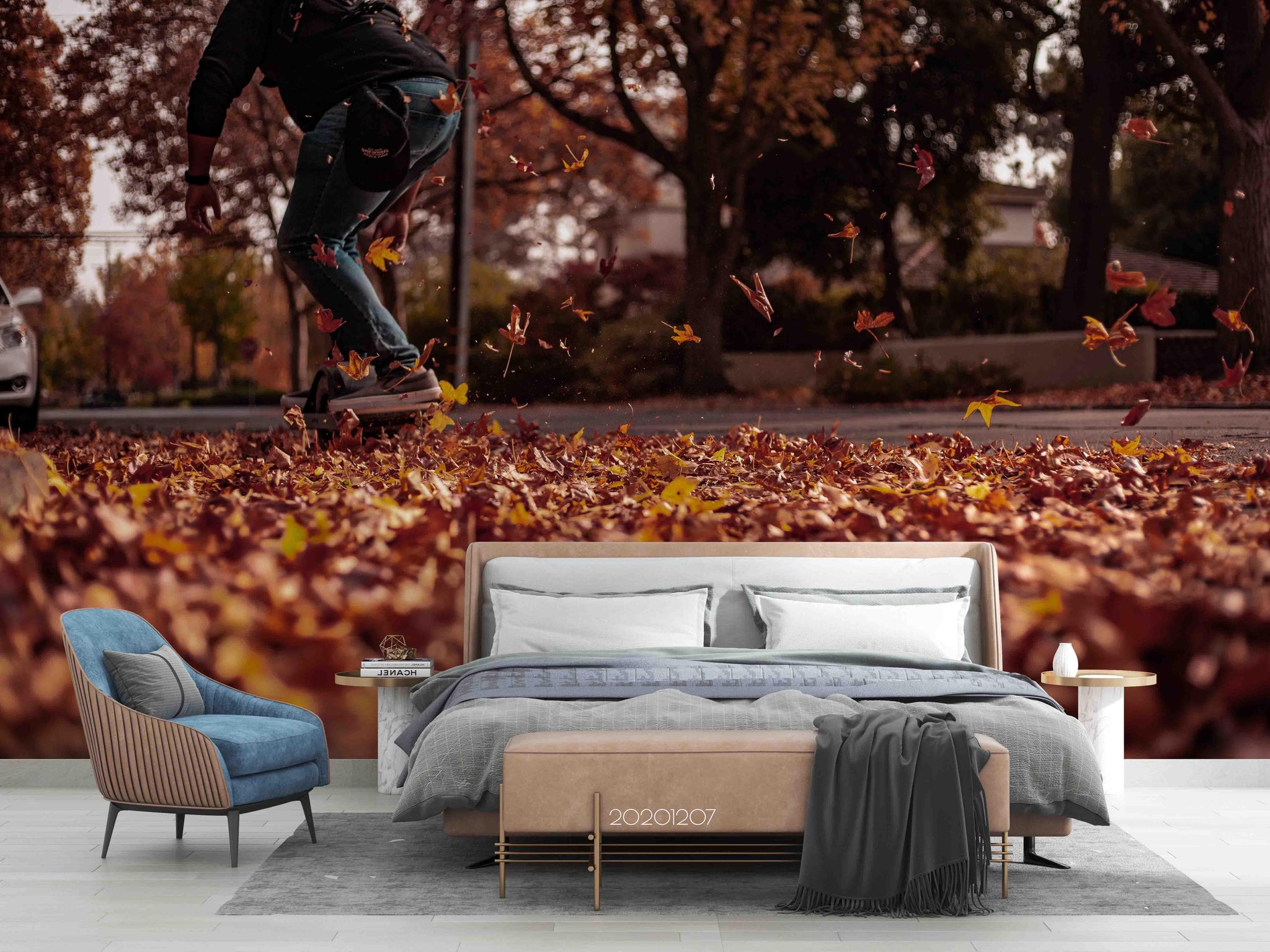 3D Pexels Fall Maple Leaves Street Skateboard Wall Mural Wallpaper LXL