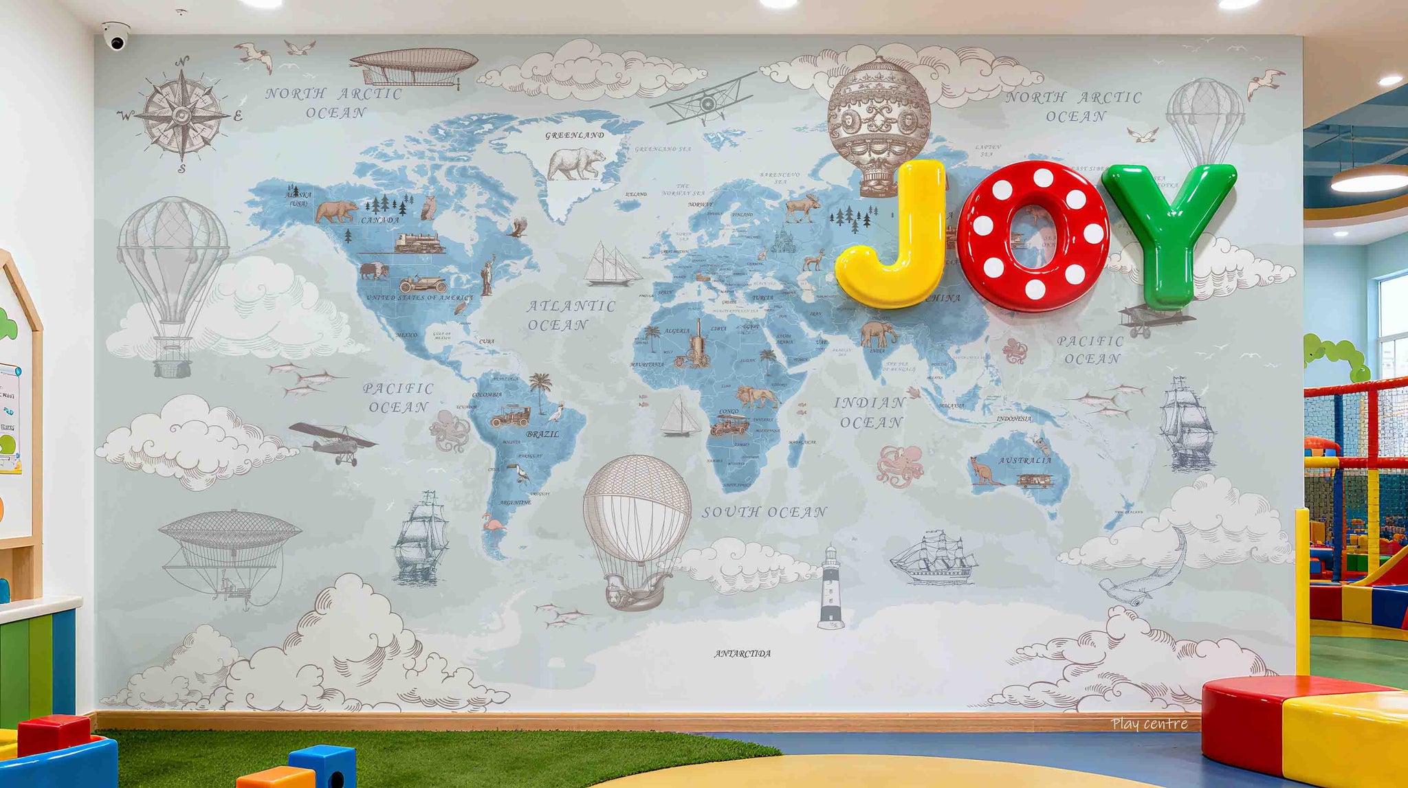 3D Play Centre Amusement Park Funfair Carnie World Map Wall Mural Wallpaper 0