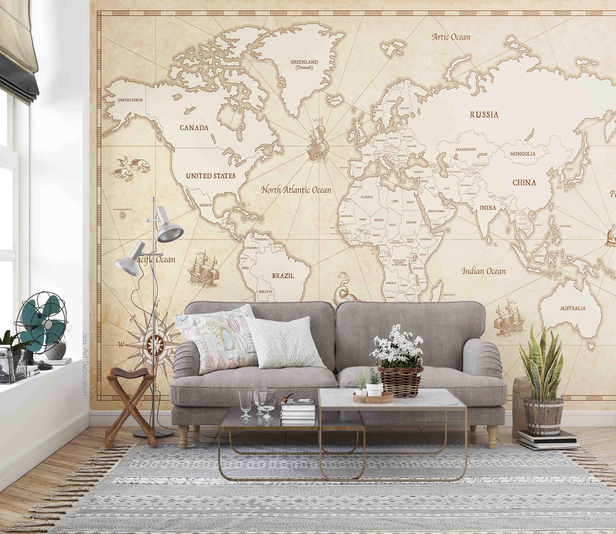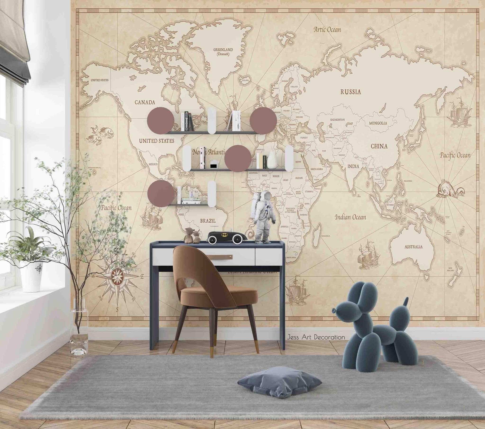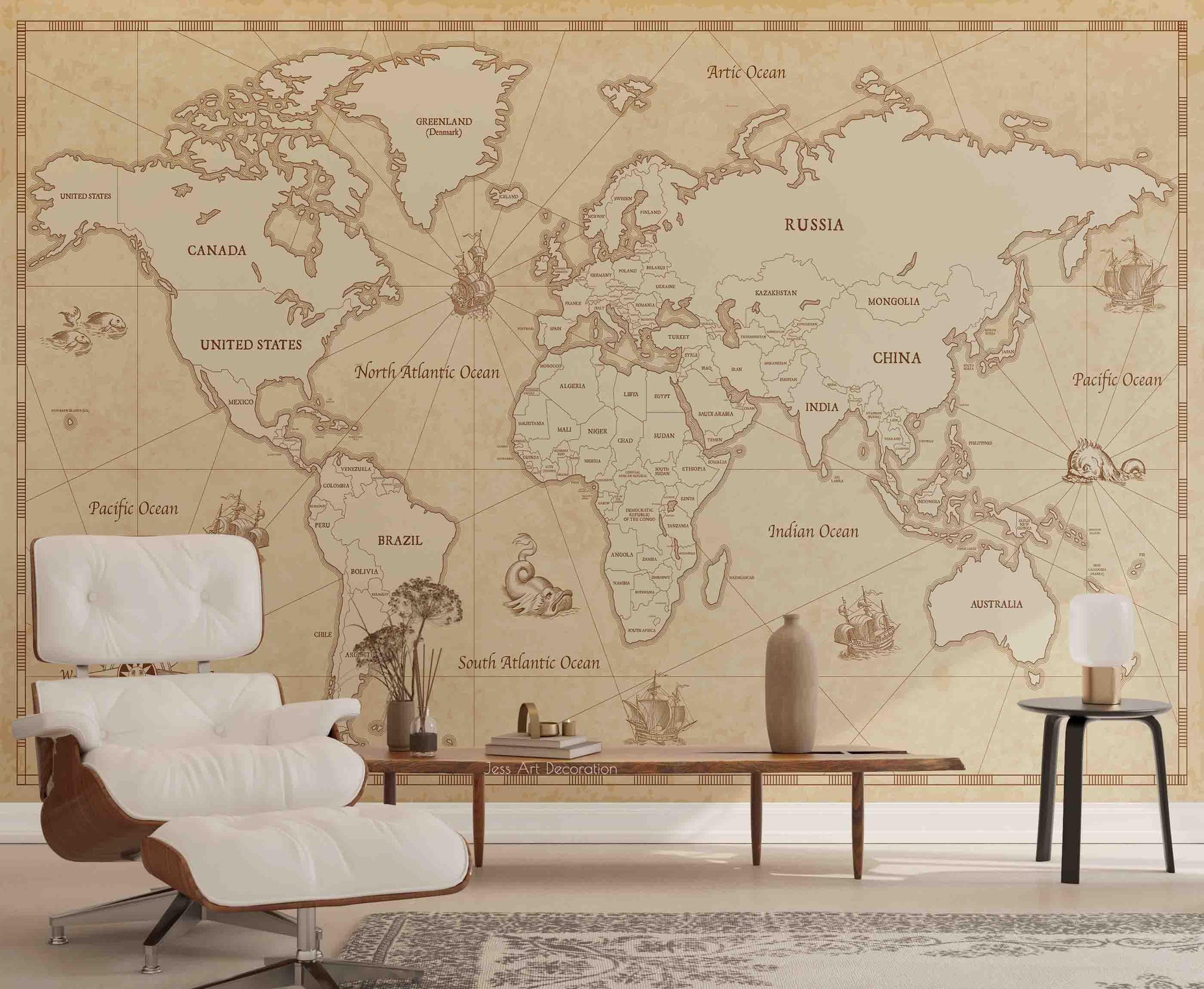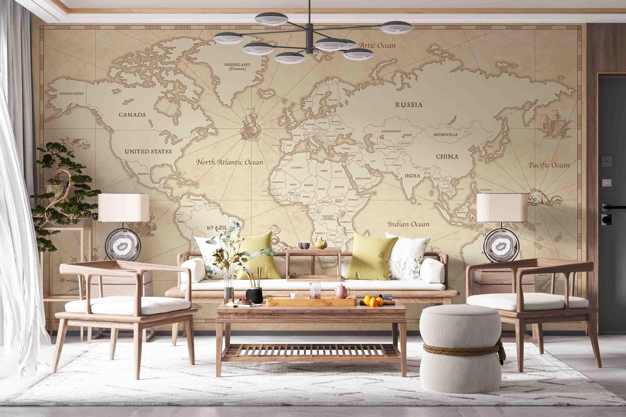 3D Retro World Map Wall Mural Wallpaper sww 212