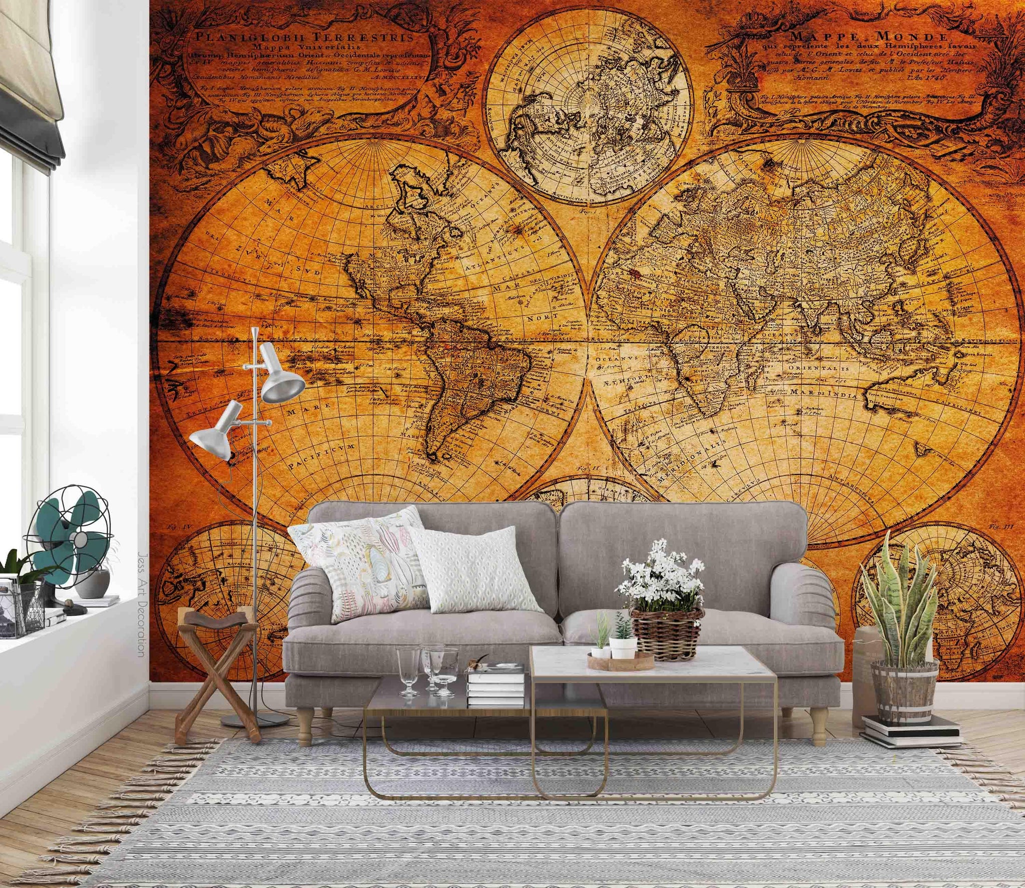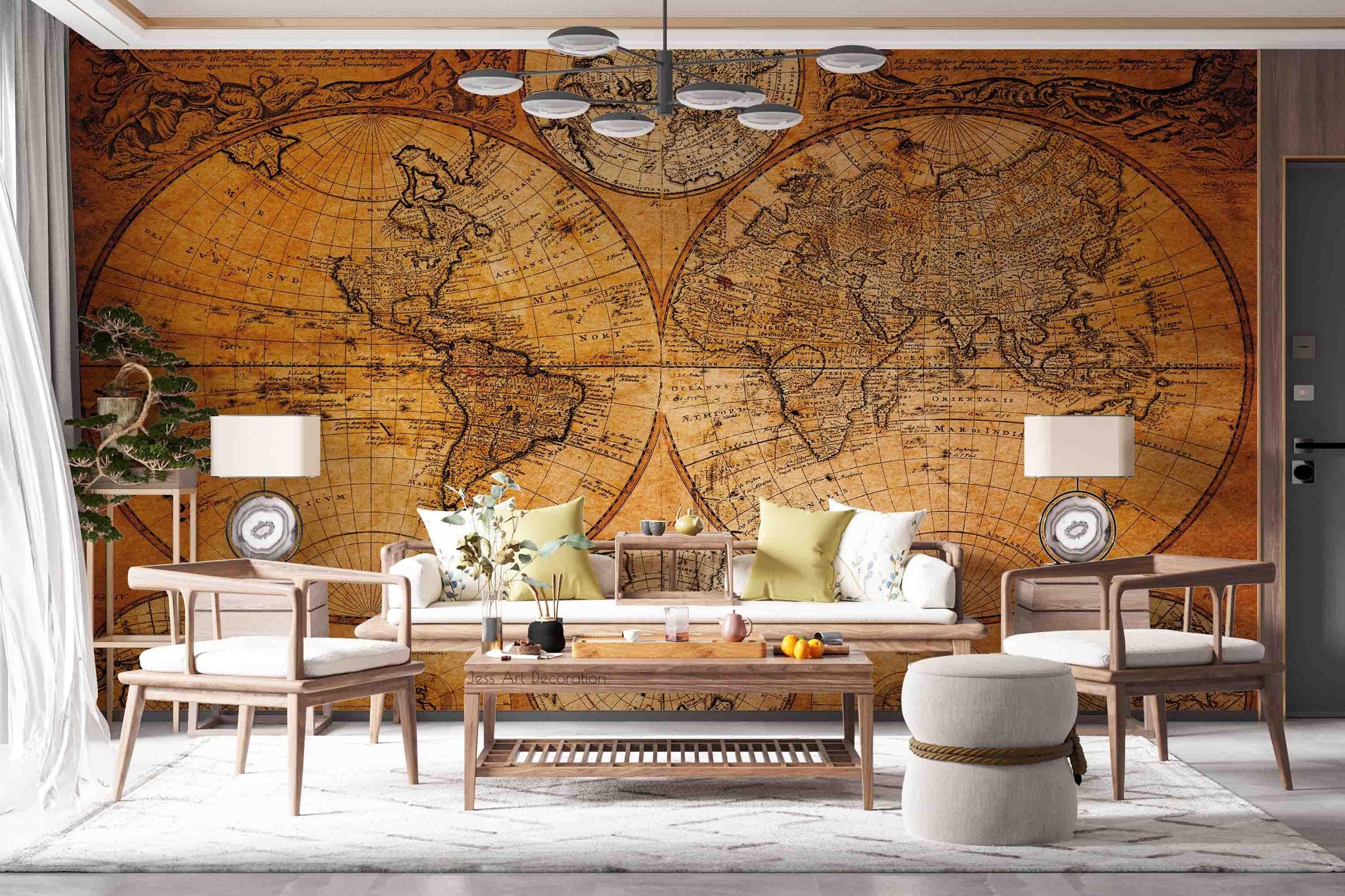 3D Retro World Map Wall Mural Wallpaper sww 256