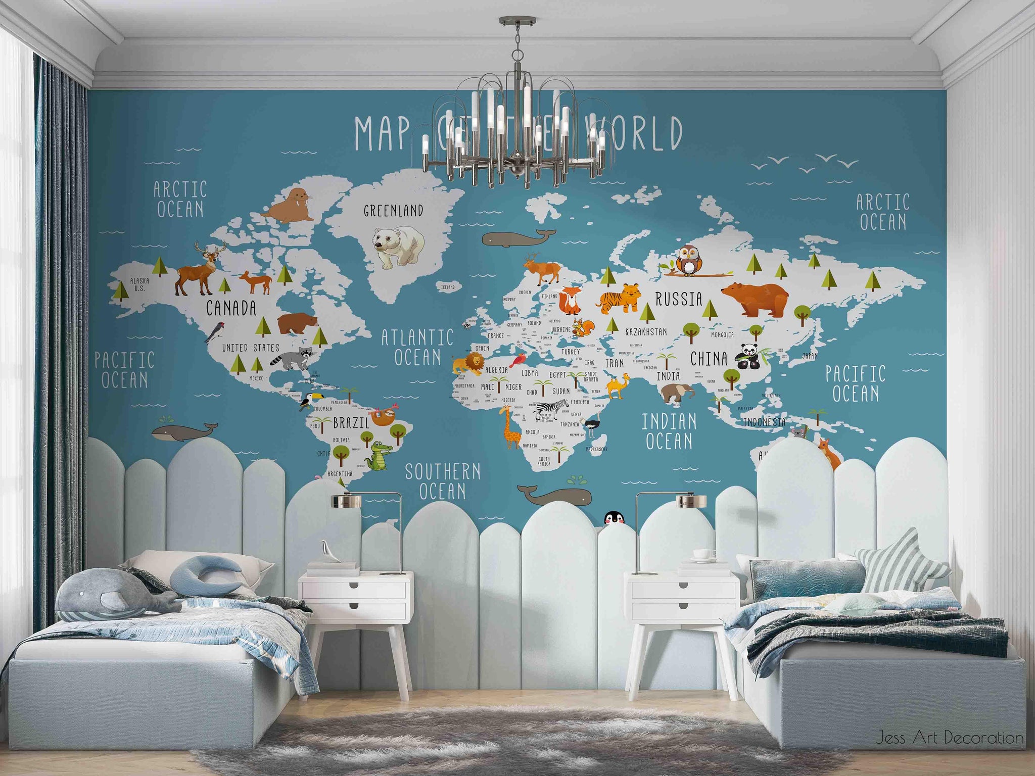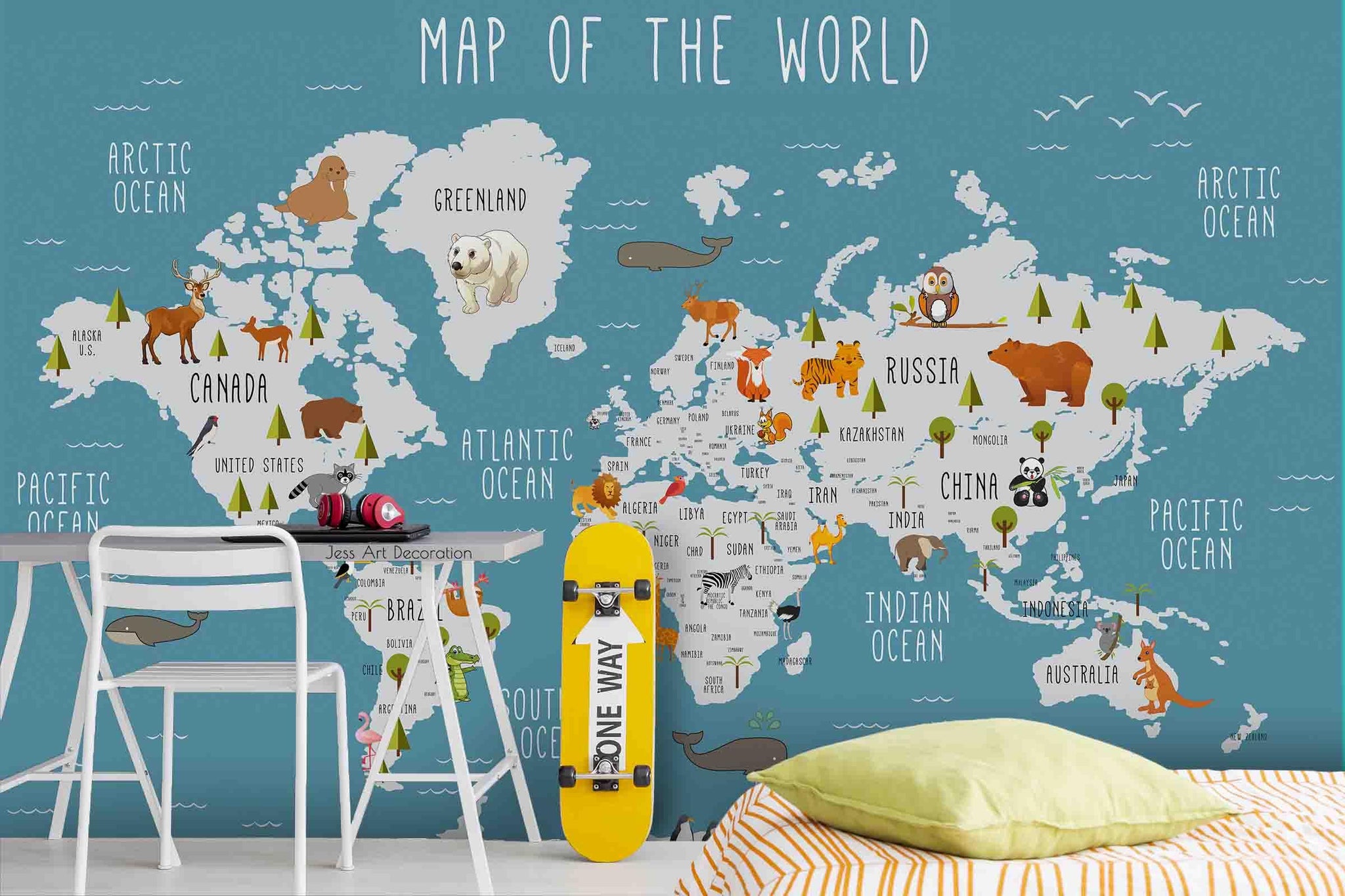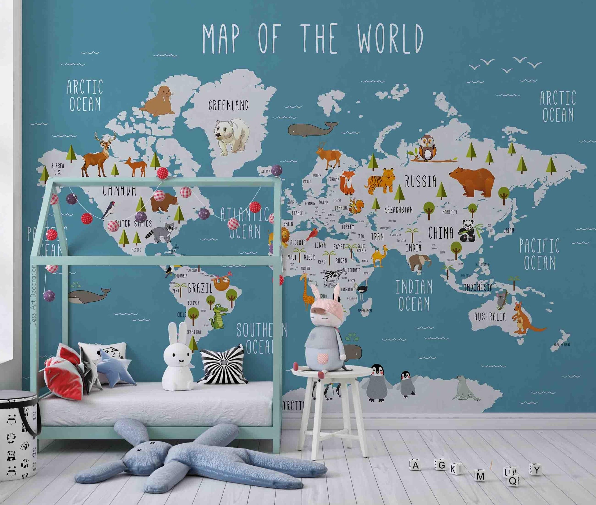3D World Map Animal Wall Mural Wallpaper GD 2646