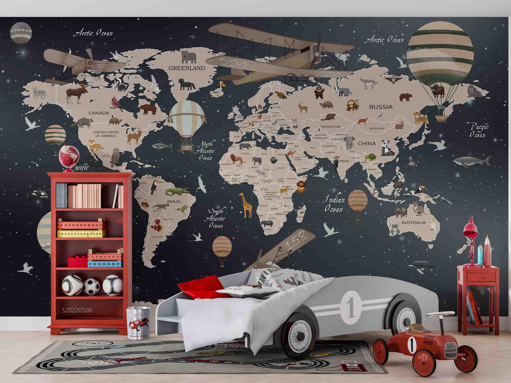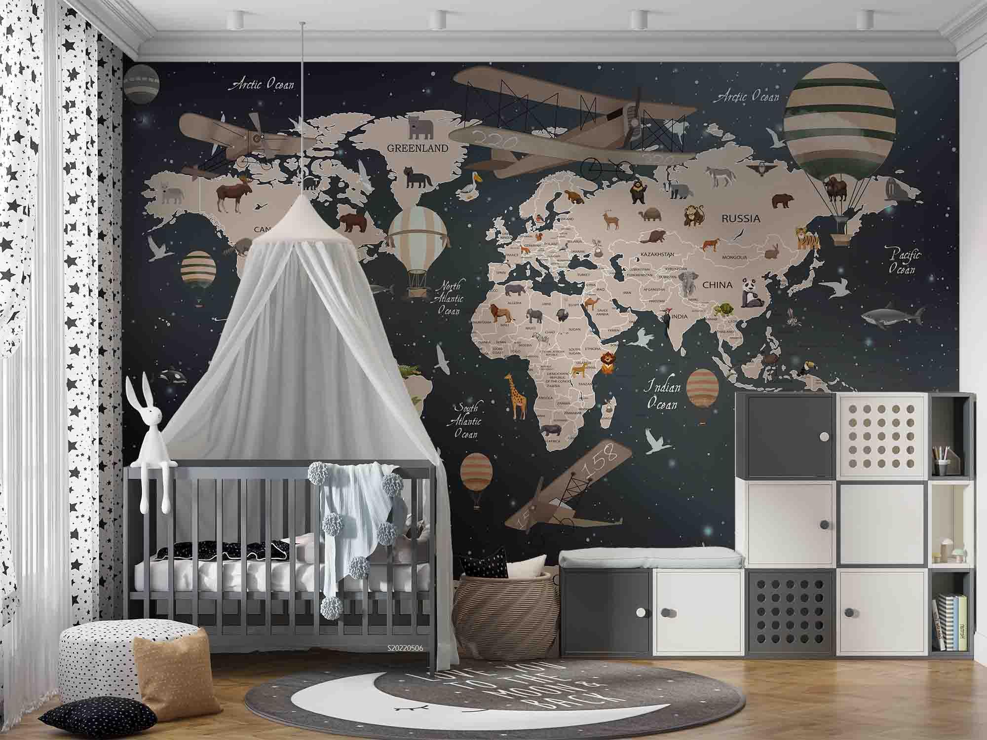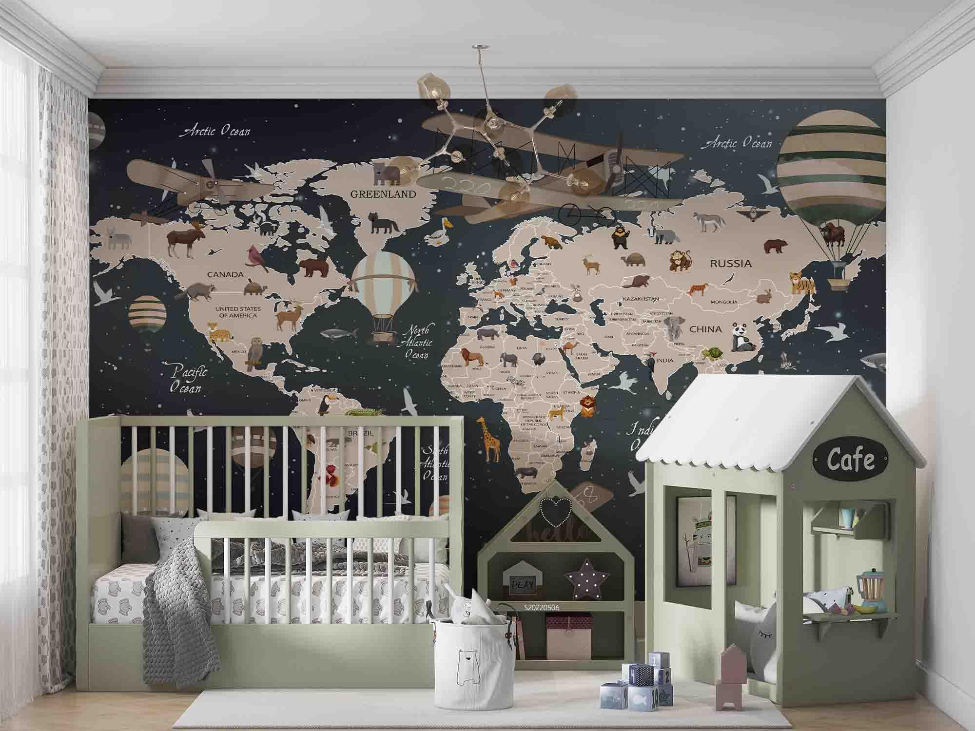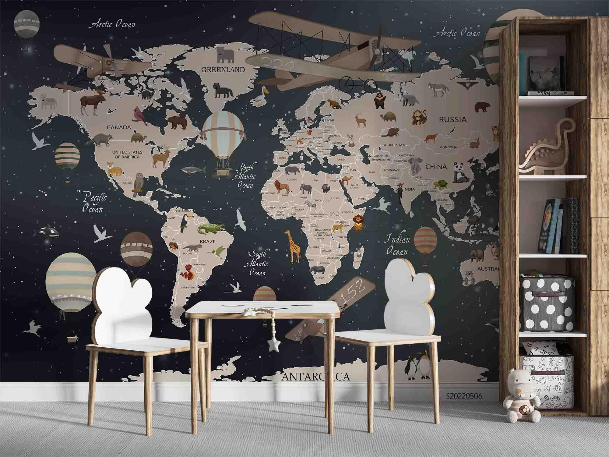 3D World Map Animals Vehicles Wall Mural Wallpaper GD 4593