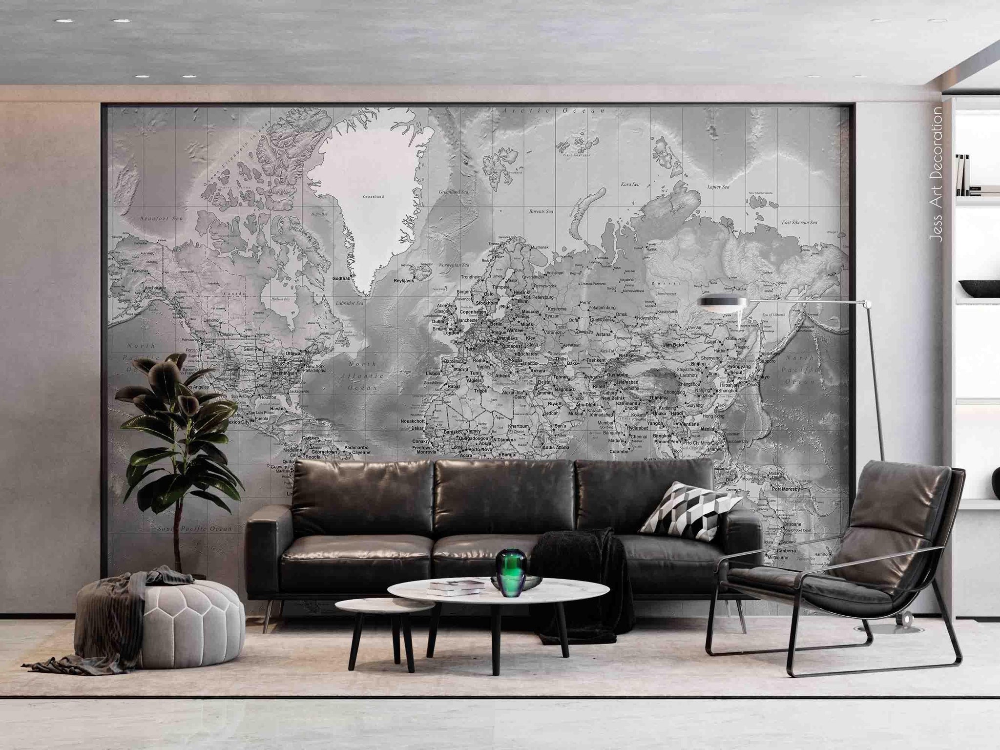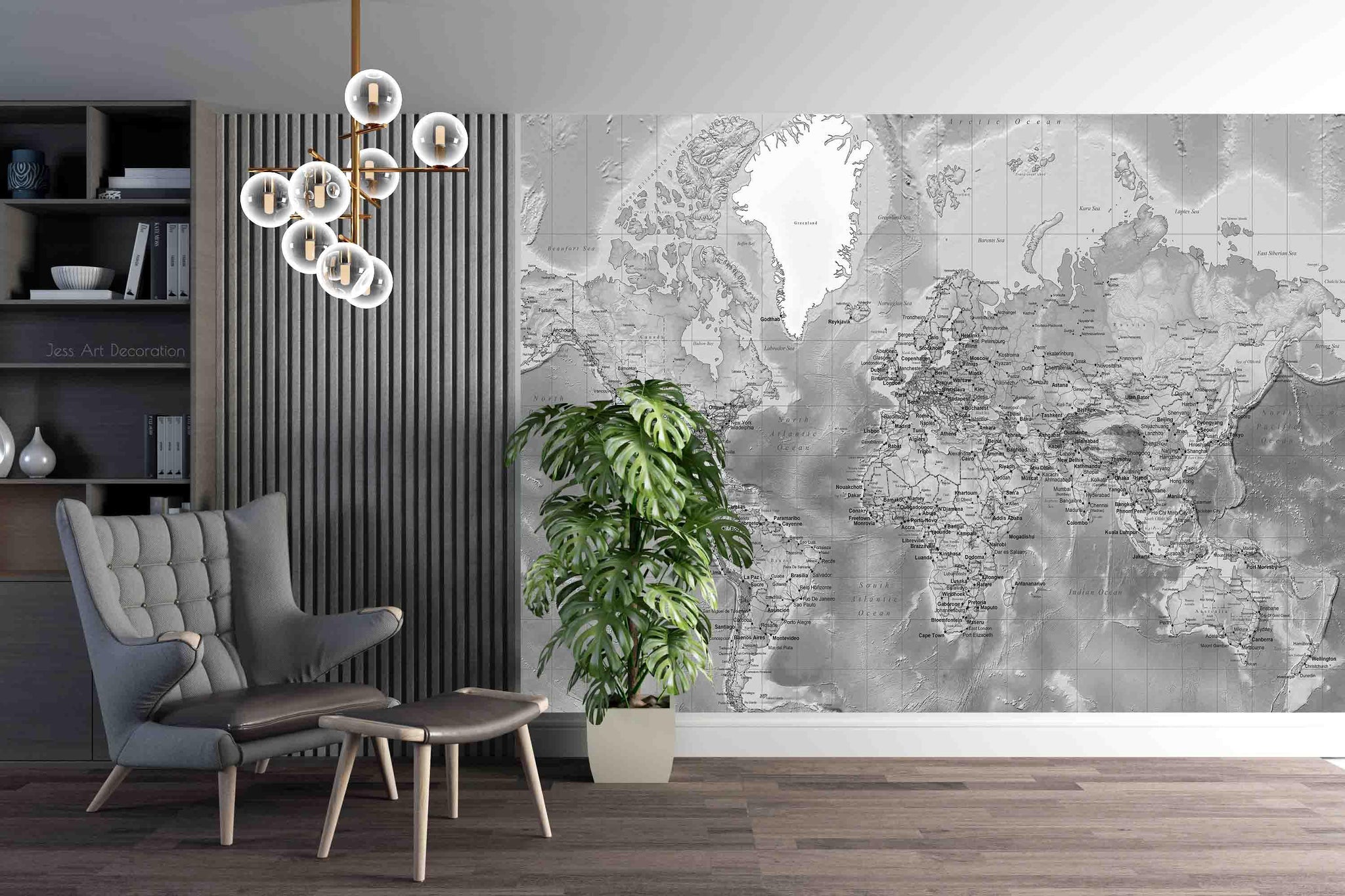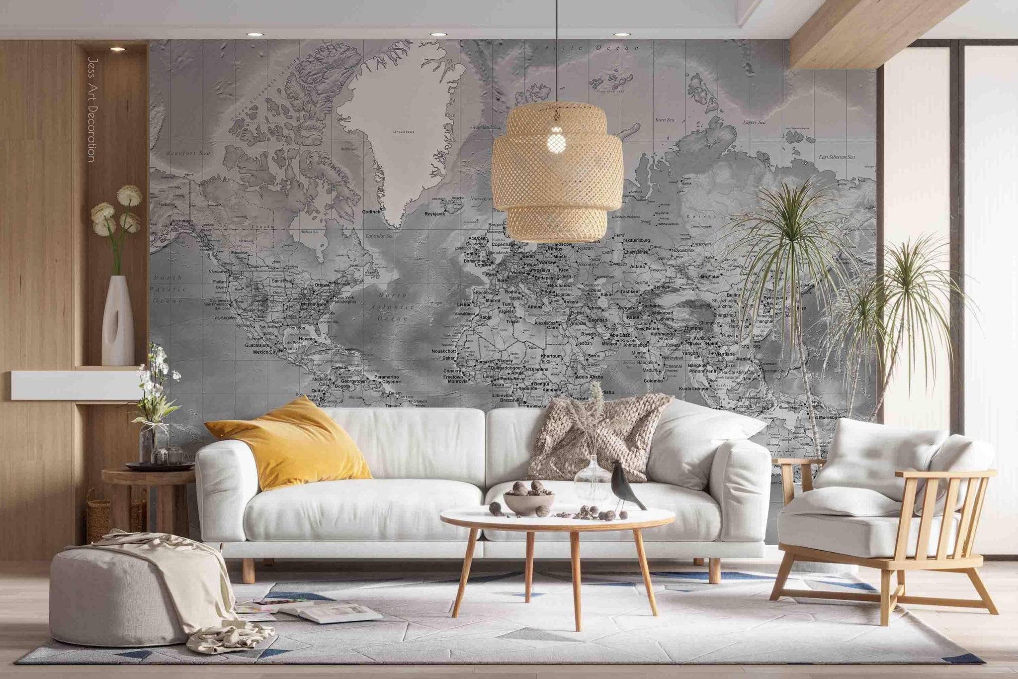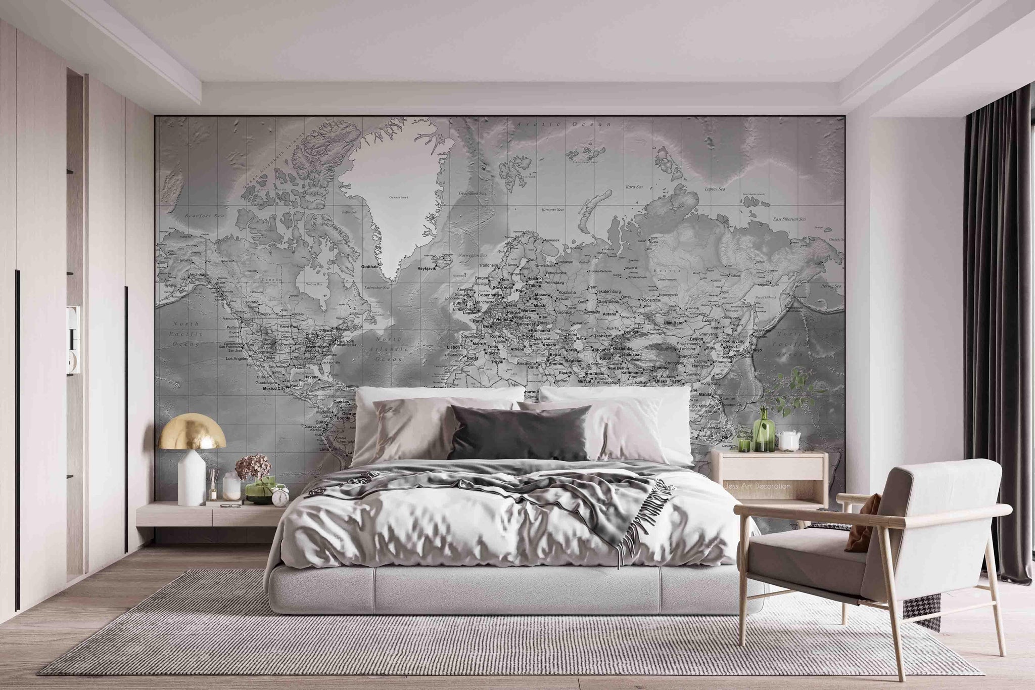 3D World Map Grey Wall Mural Wallpaper GD 3147
