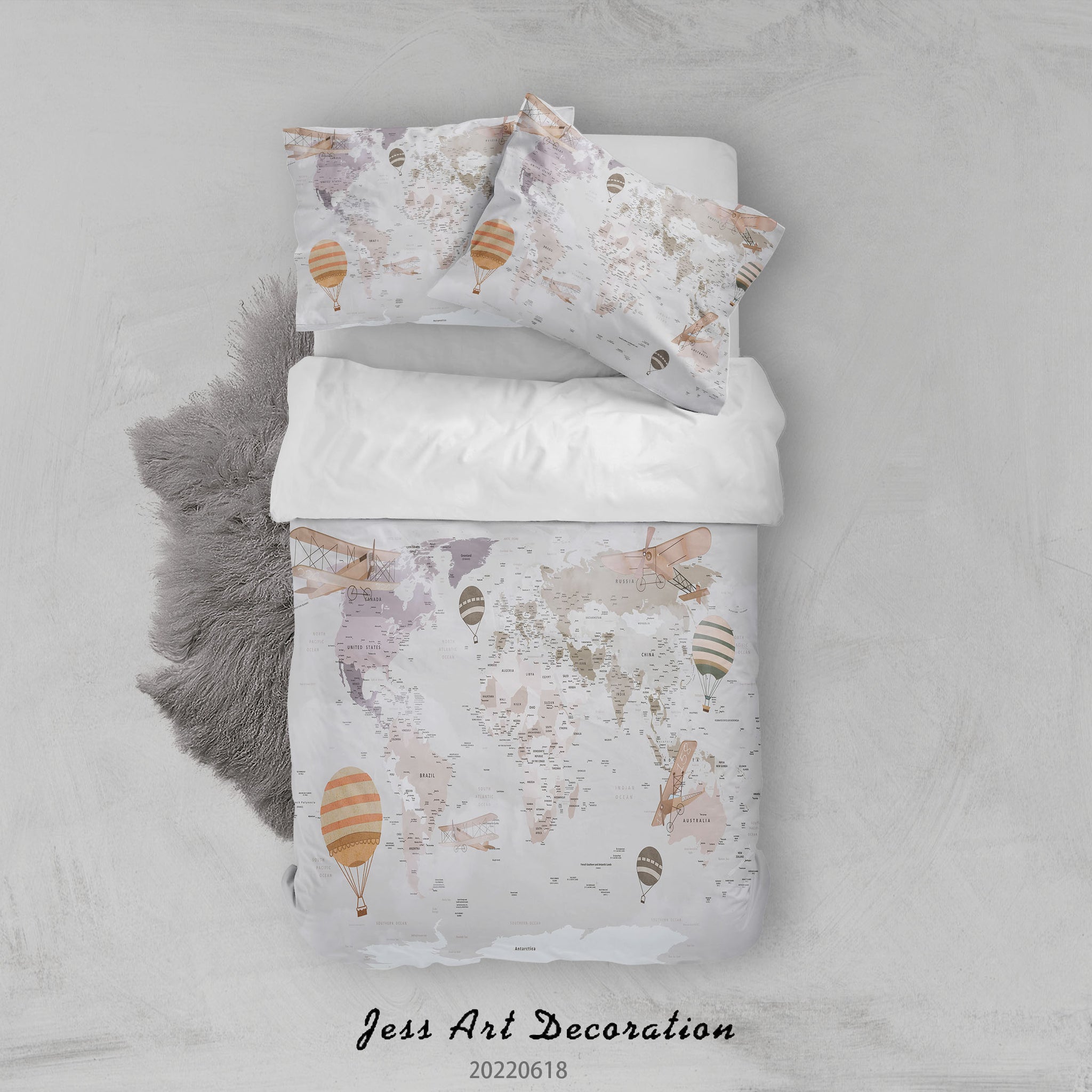 3D World Map Hydrogen Balloon Aircraft Quilt Cover Set Bedding Set Duvet Cover Pillowcase 626