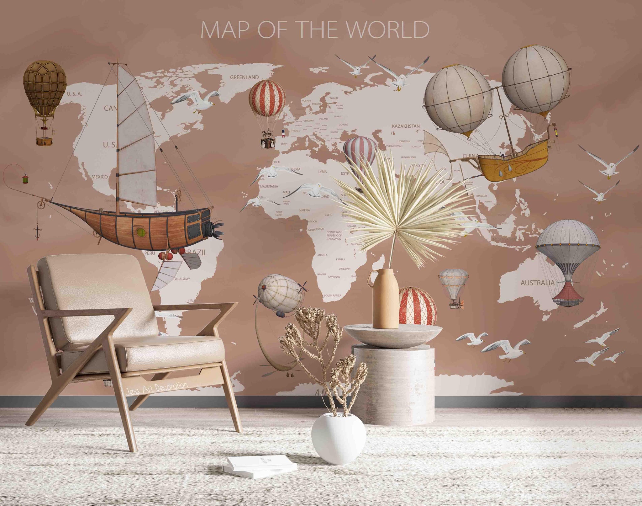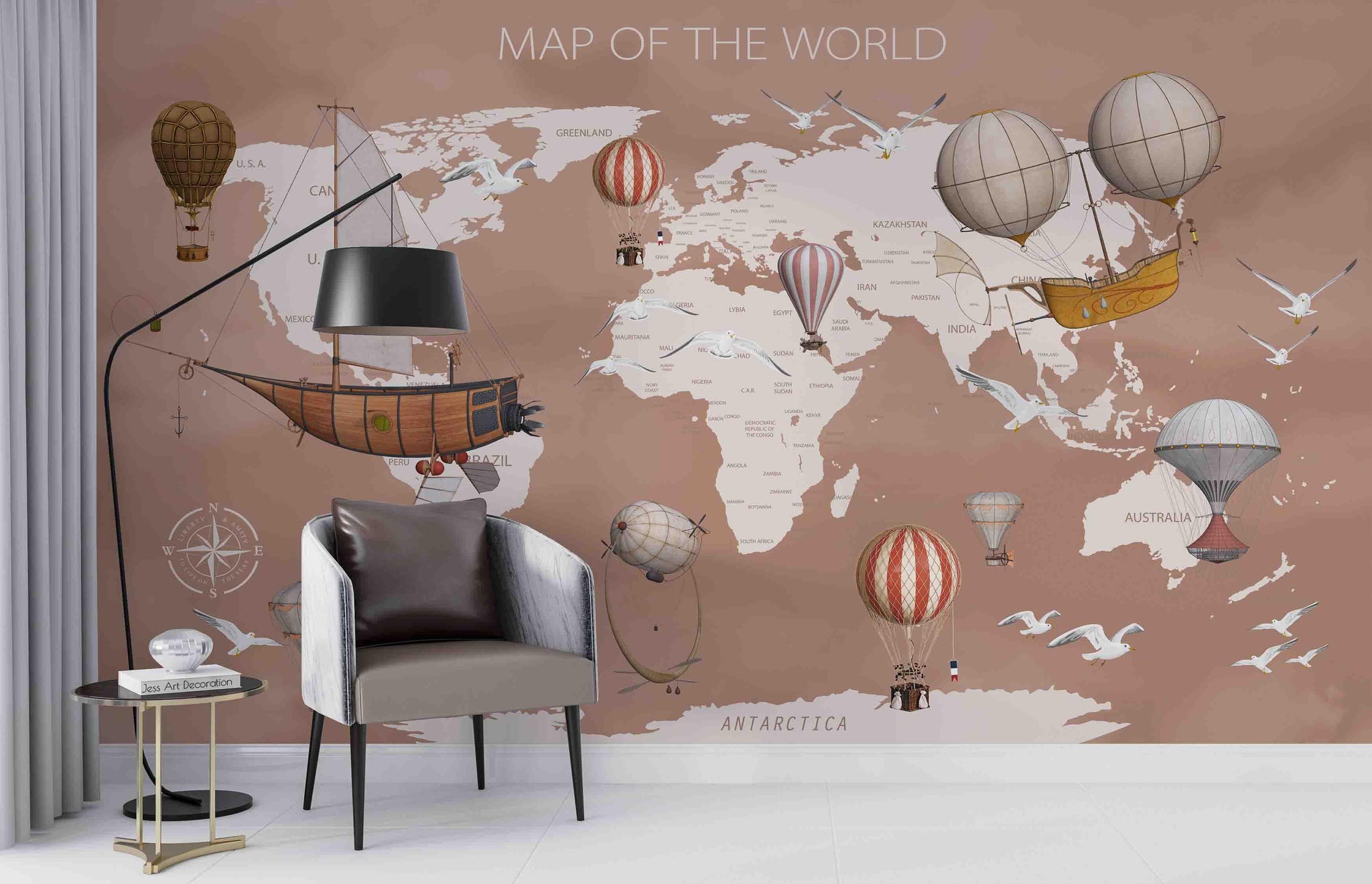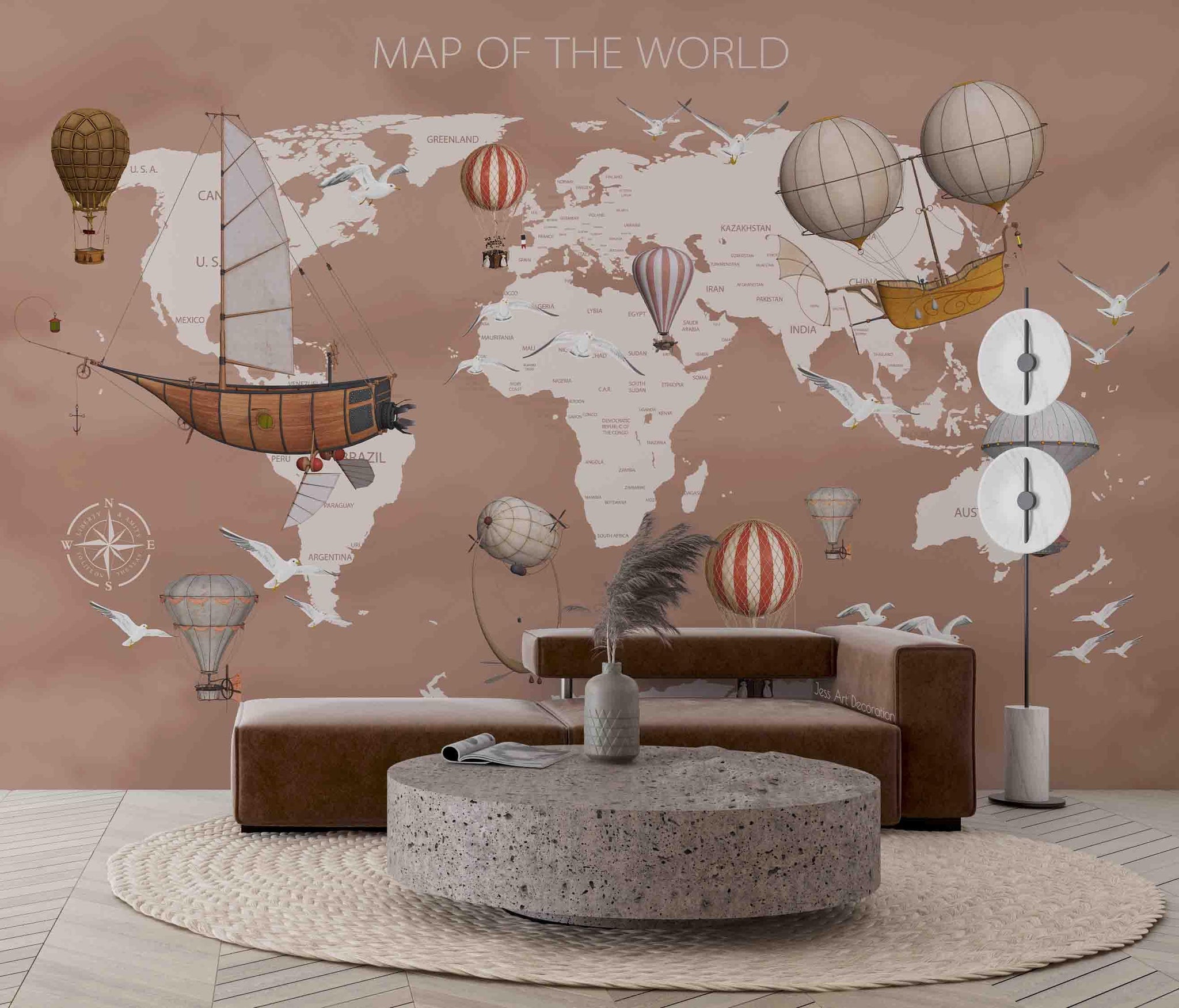 3D World Map Vehicle Wall Mural Wallpaper GD 2486