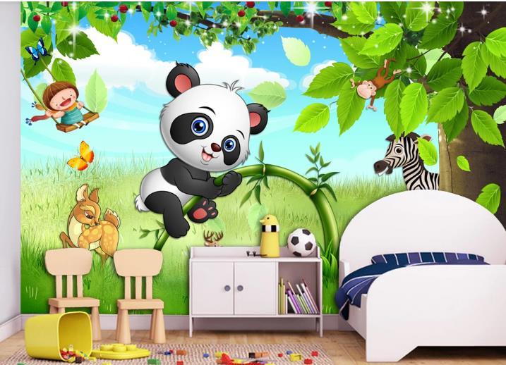 3D Hand Drawn Forest Animal Panda Wall Mural Wallpaper LQH 331