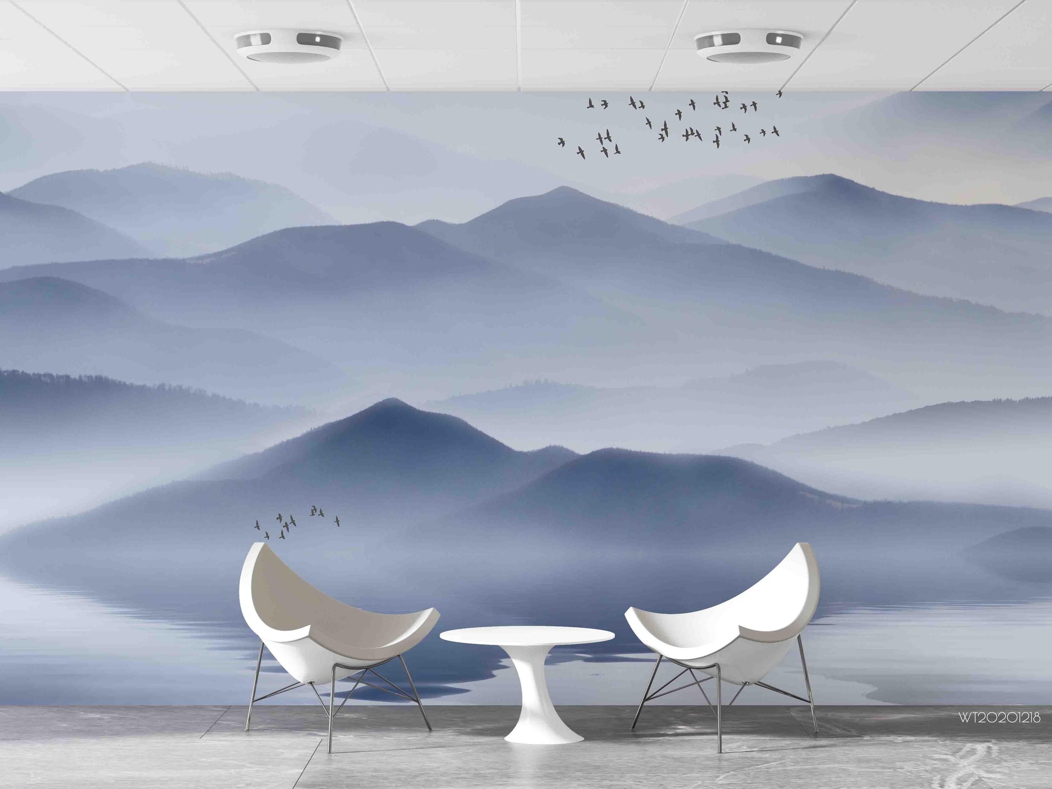 3D Hand Drawn Mountain Bird Wall Mural Wallpaper LQH 175