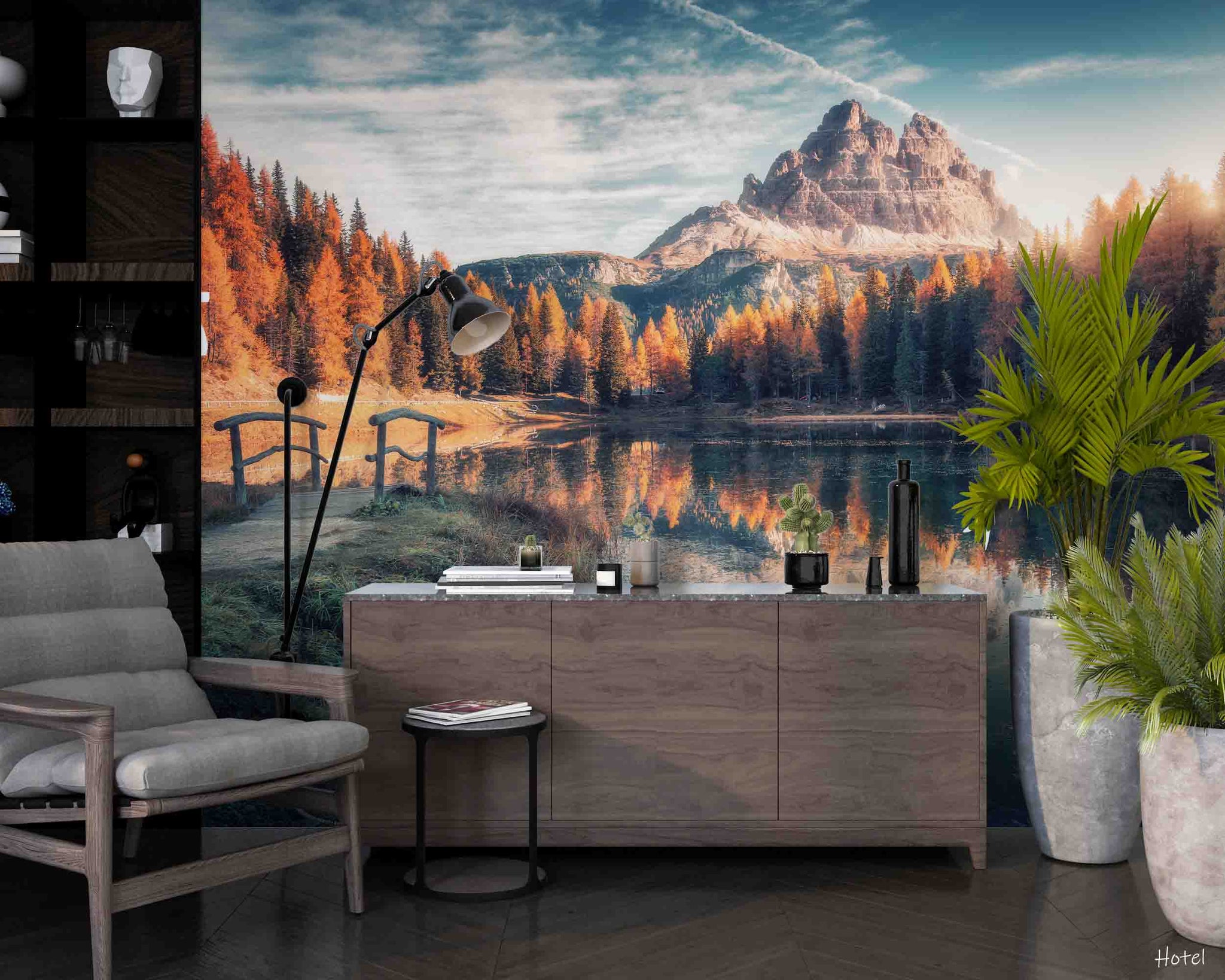 3D Hotel Inn Motel Hostel Resort Manor Scenery Lake Mountains Forest Wall Mural Wallpaper 13