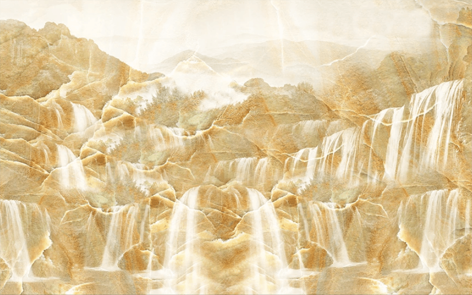 3D Mountains Waterfall Wall Mural Wallpaper 1603