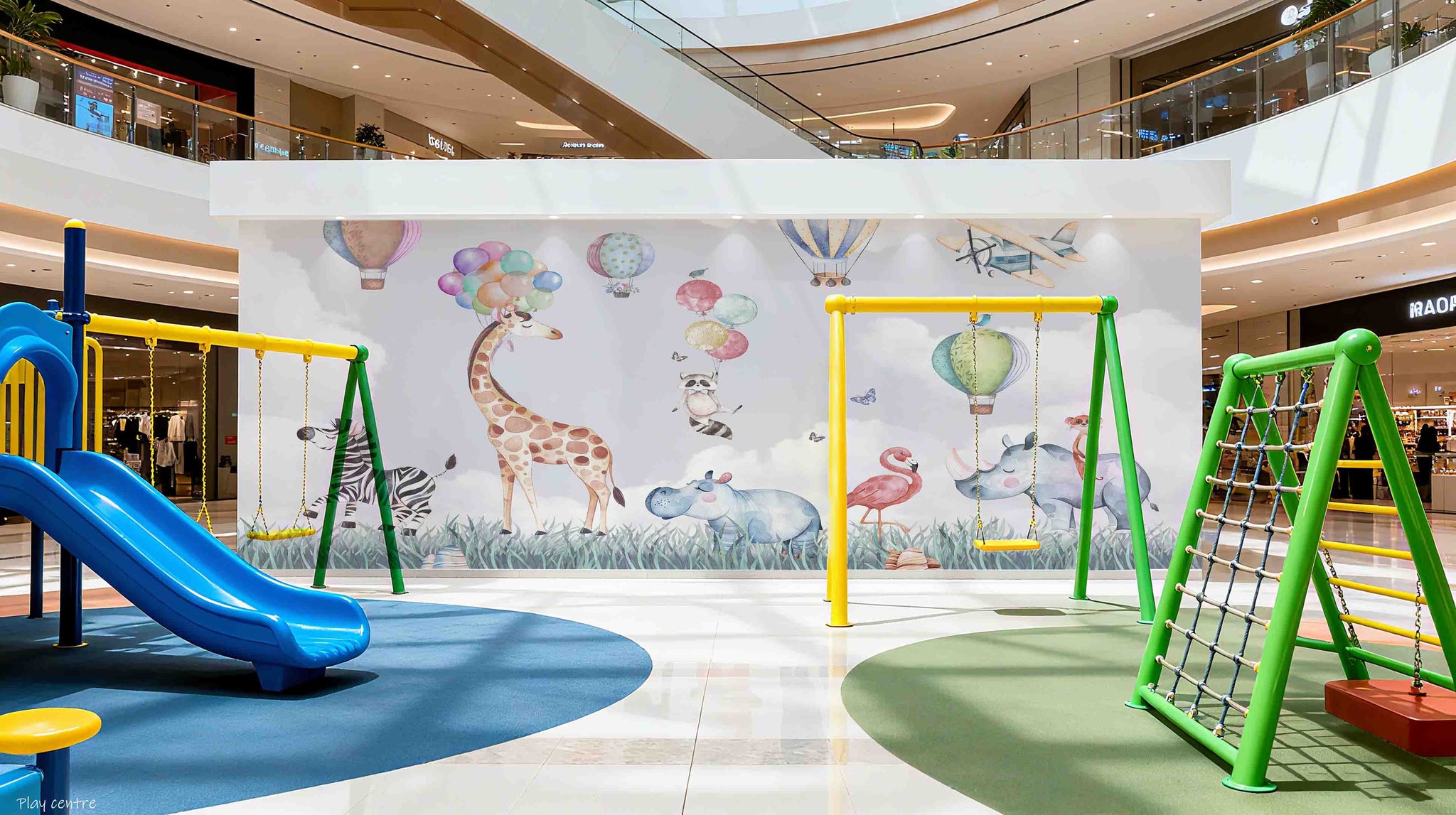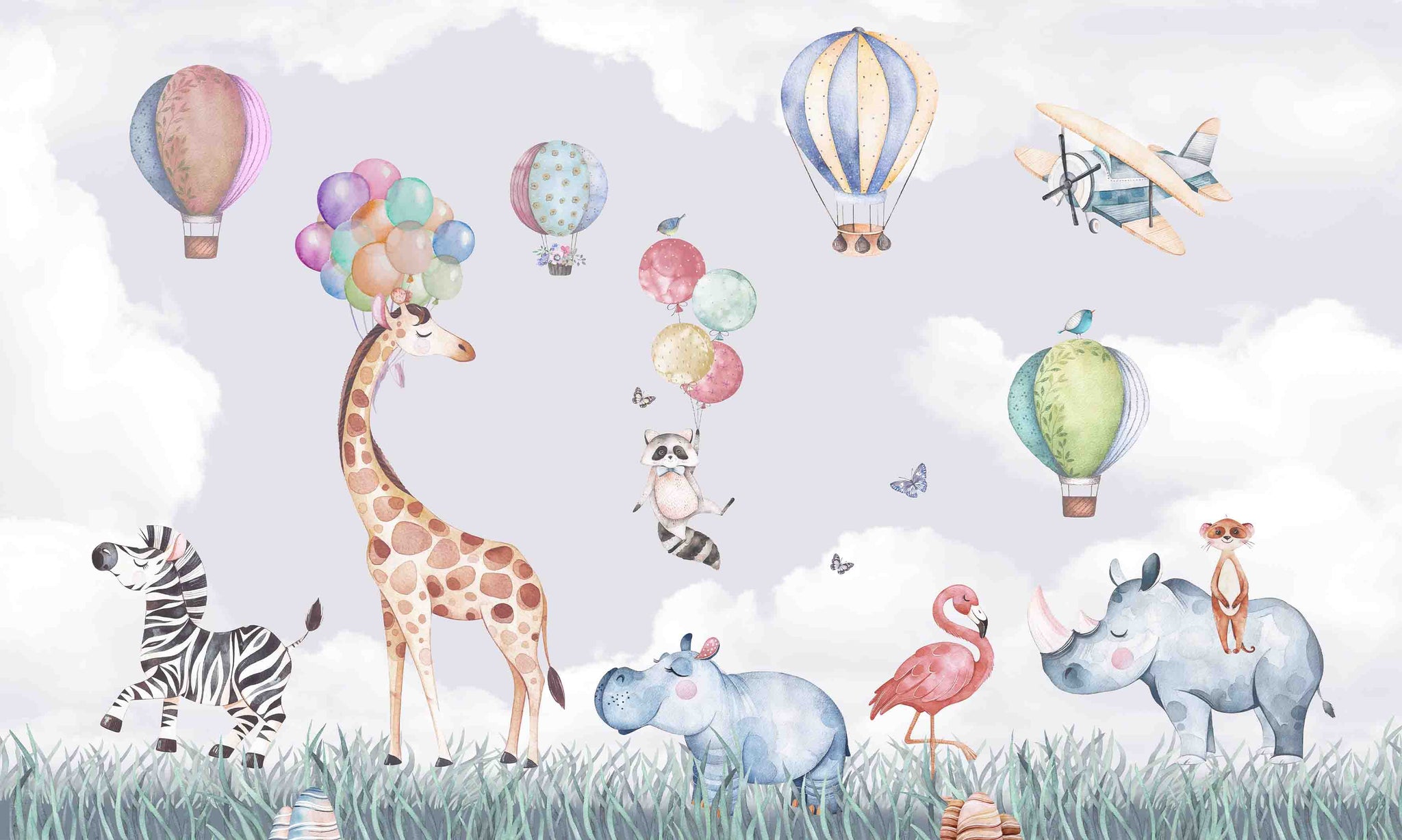 3D Play Centre Amusement Park Funfair Carnie Cartoon Animals Air Balloon Wall Mural Wallpaper 25