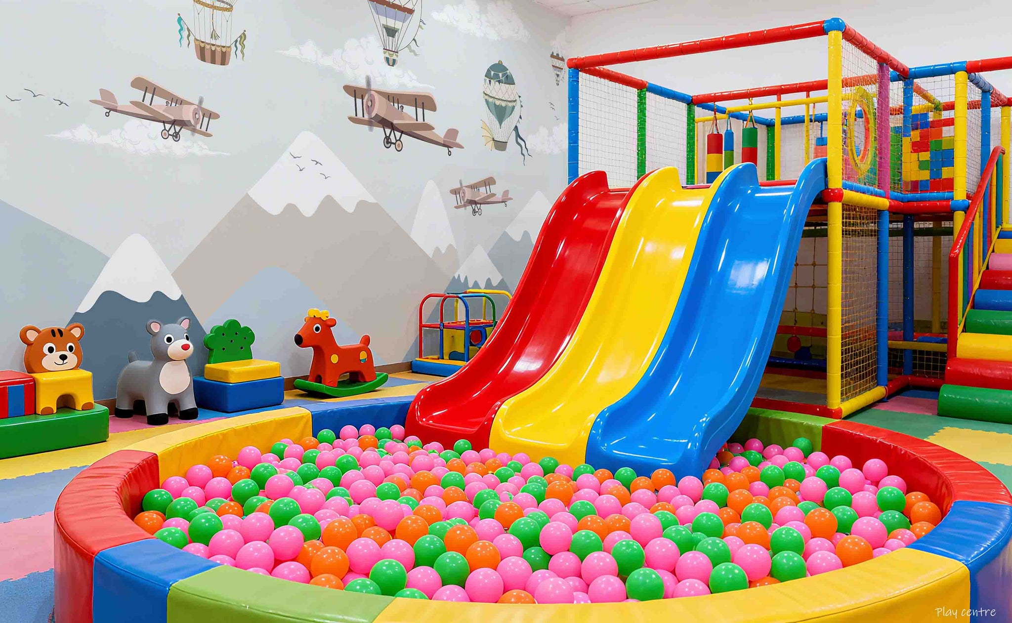 3D Play Centre Amusement Park Funfair Carnie Mountains Plane Fire Balloon Wall Mural Wallpaper 13