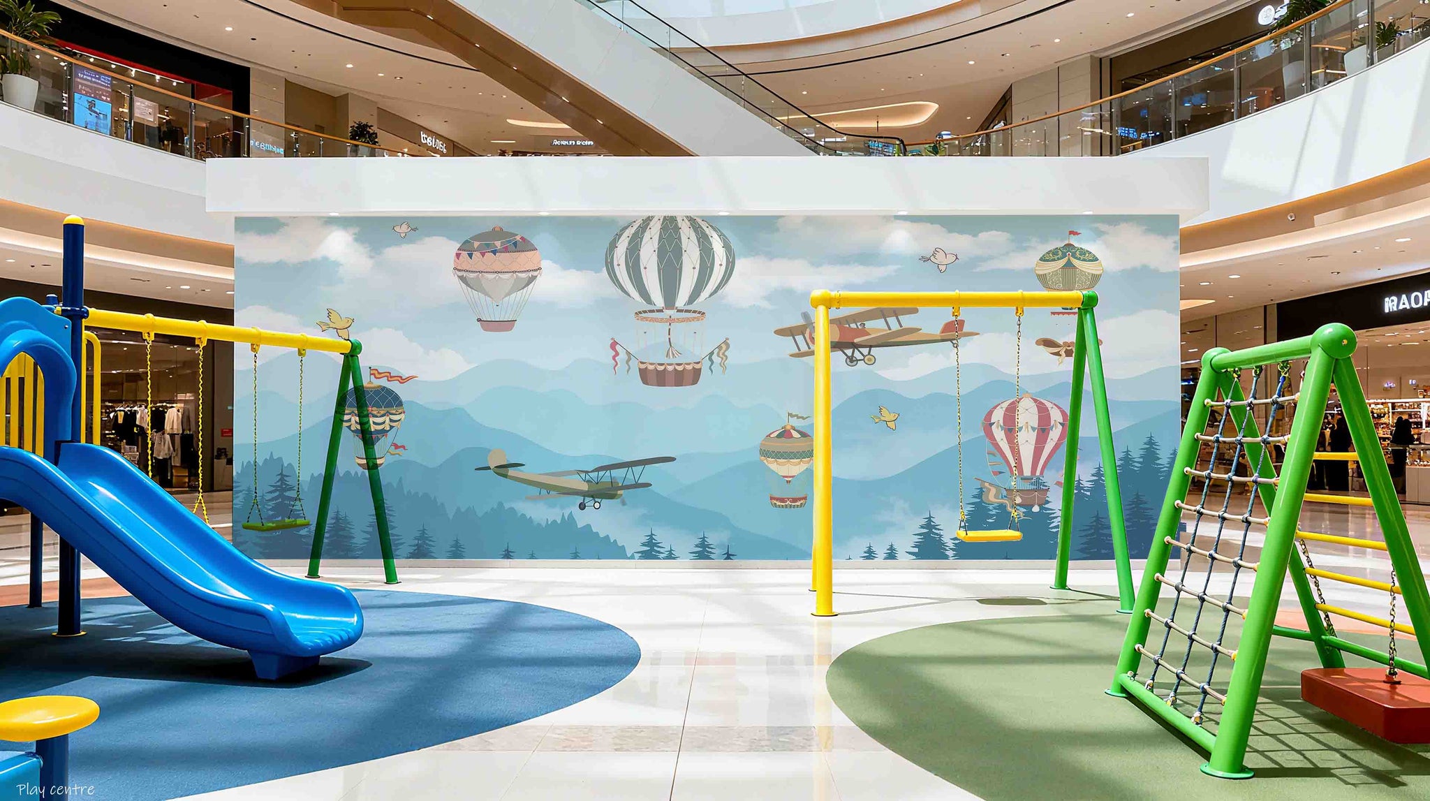 3D Play Centre Amusement Park Funfair Carnie Scenery Fire Balloon Wall Mural Wallpaper 1