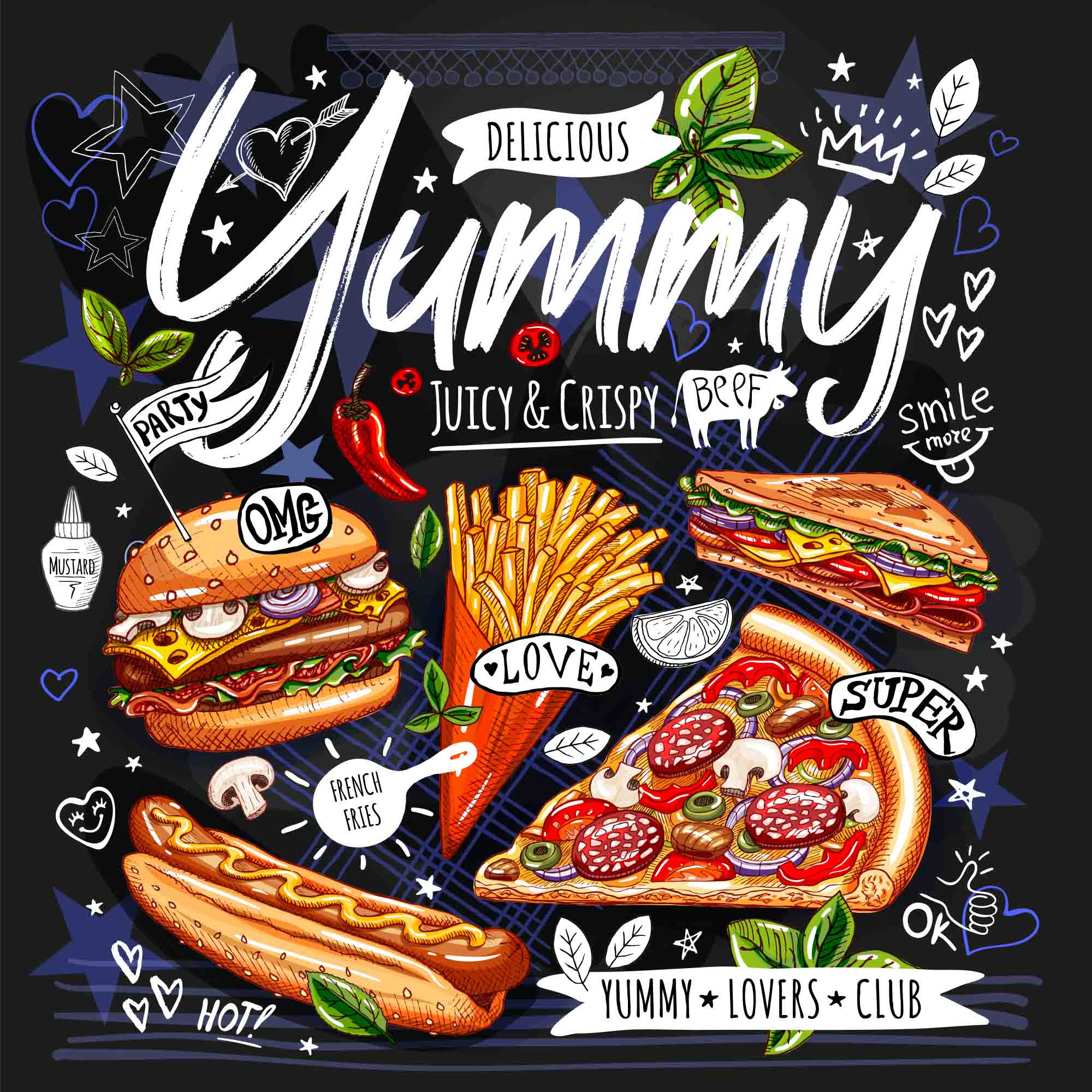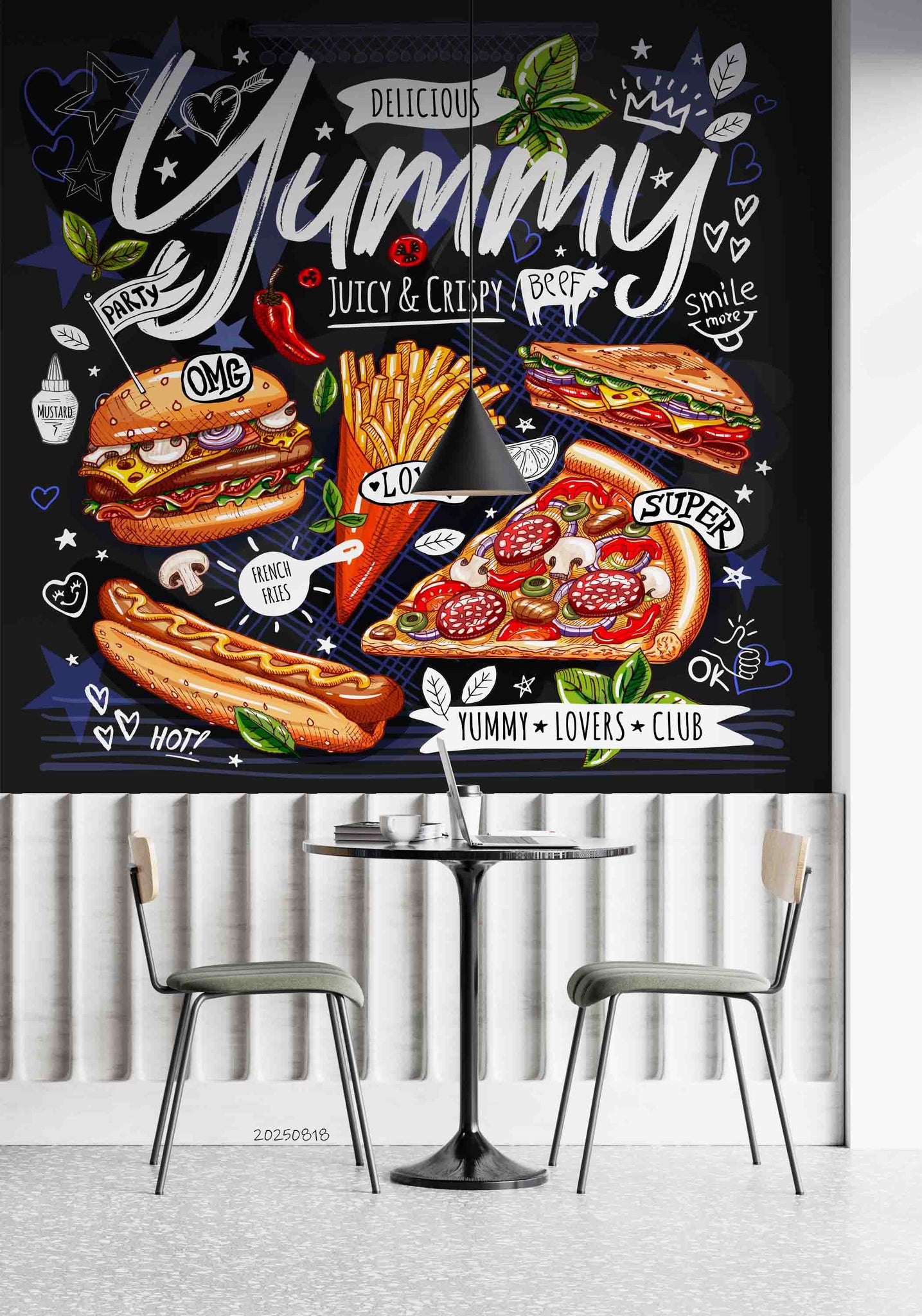 3D Restaurant Snack Bar Diner Fast Food Hamburger Chips Pizza Wall Mural Wallpaper 8