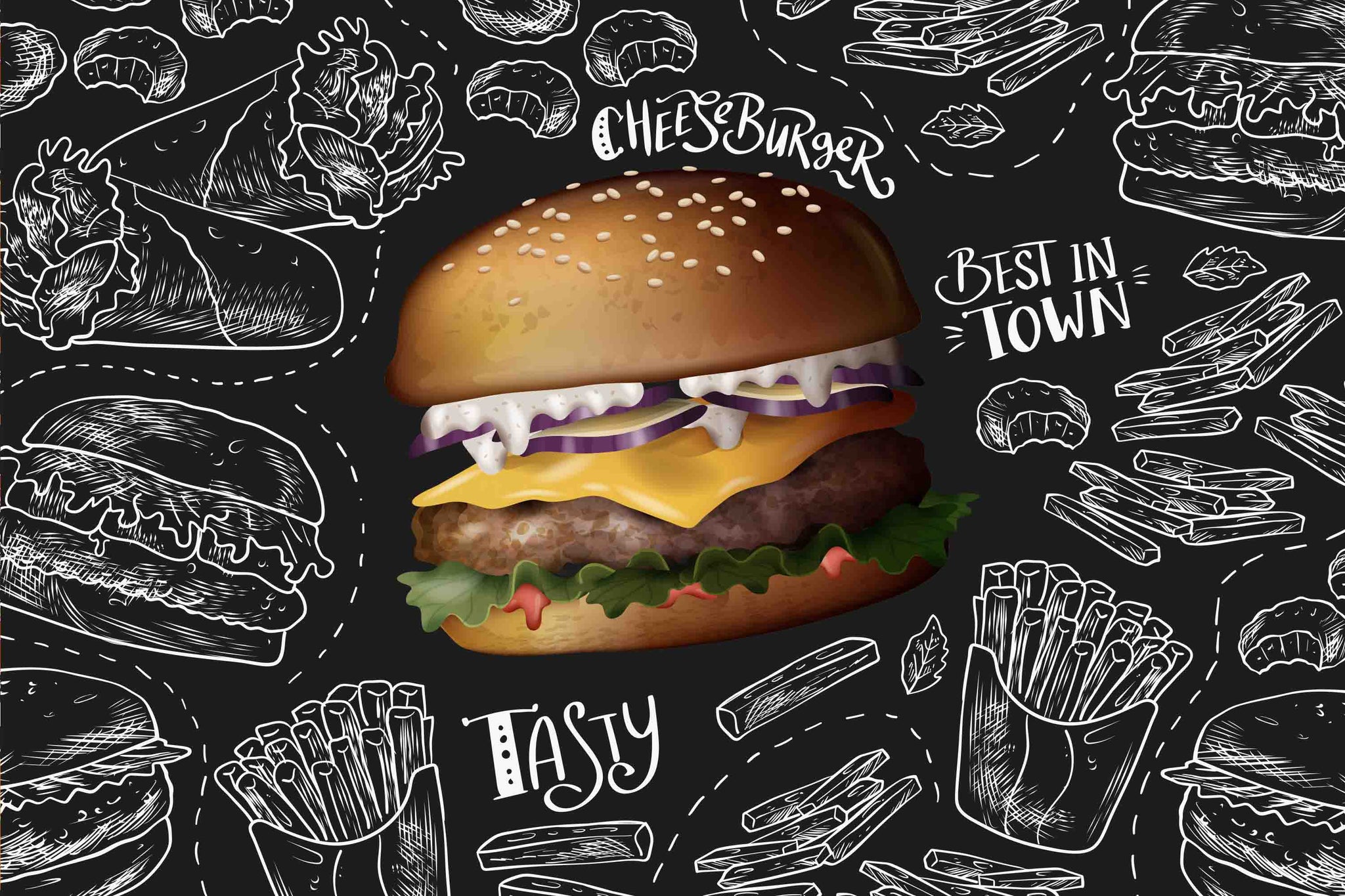 3D Restaurant Snack Bar Diner Fast Food Hamburger Cips Wall Mural Wallpaper 1