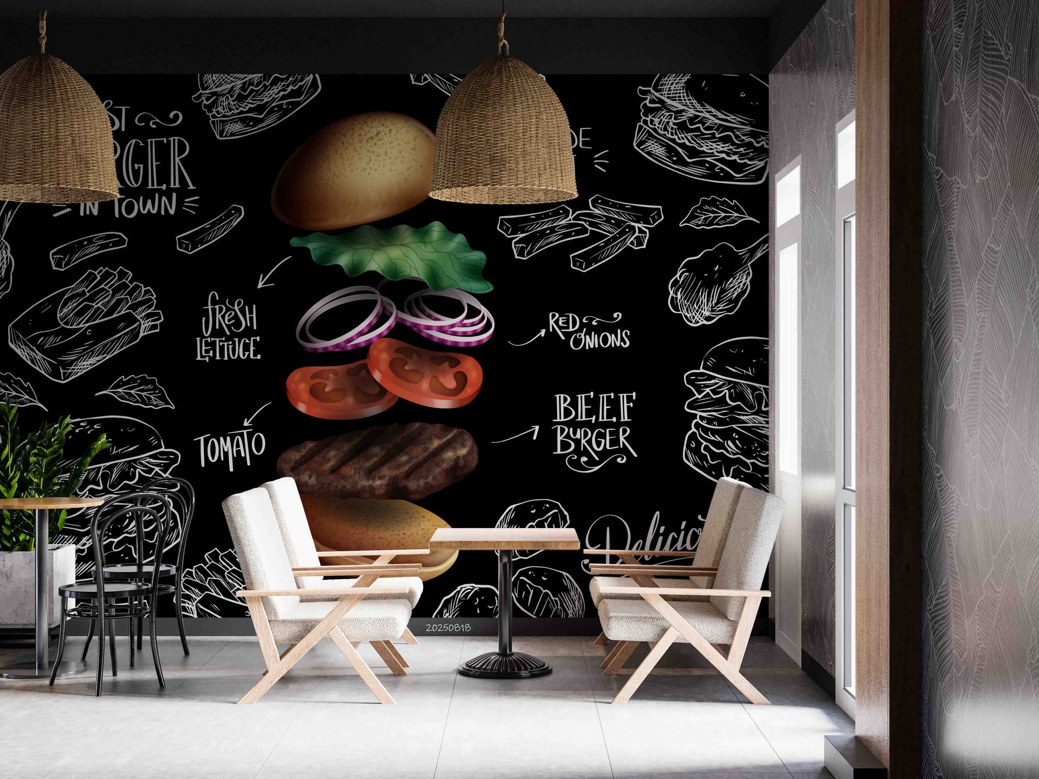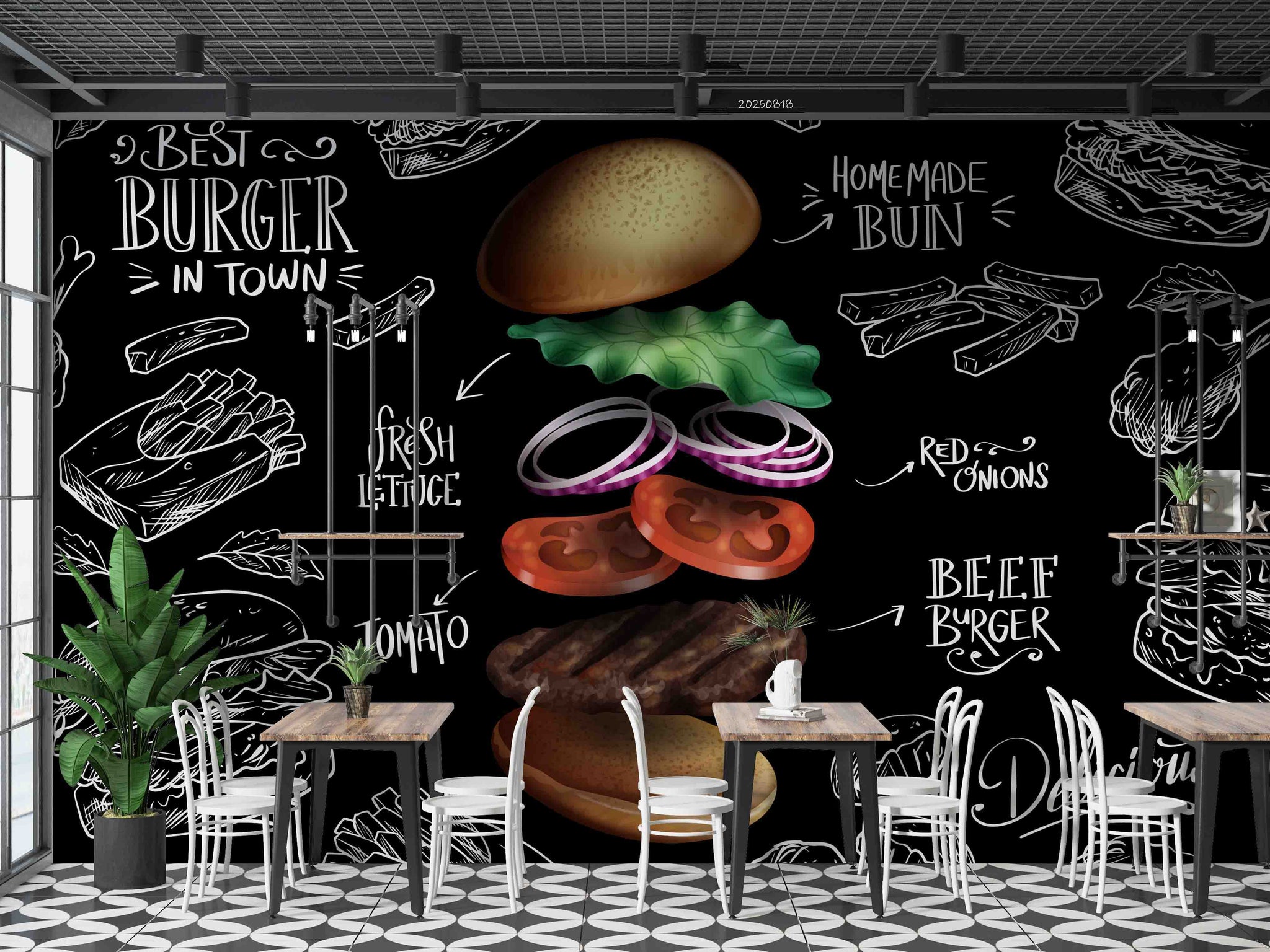 3D Restaurant Snack Bar Diner Fast Food Hamburger Cips Wall Mural Wallpaper 11