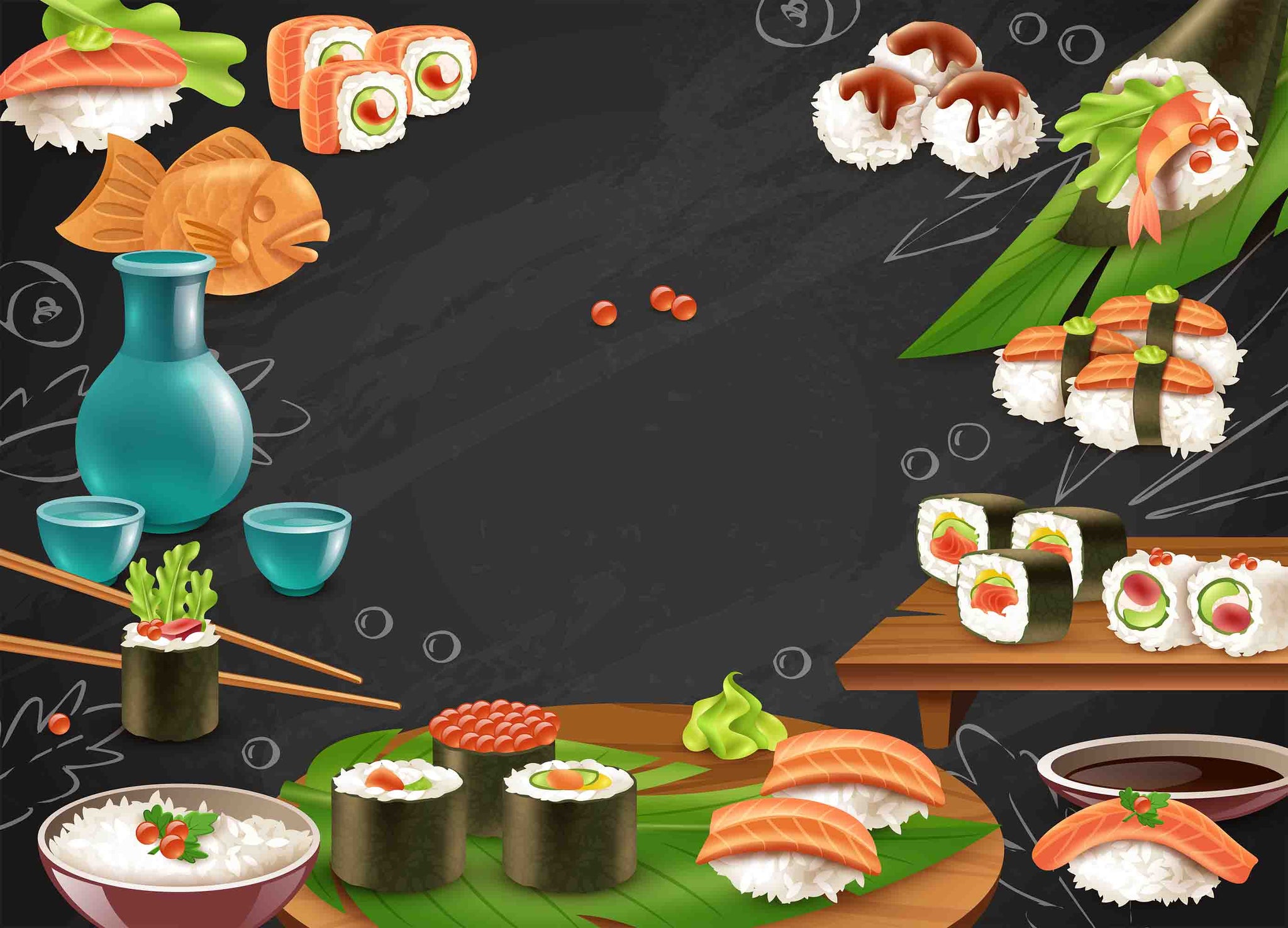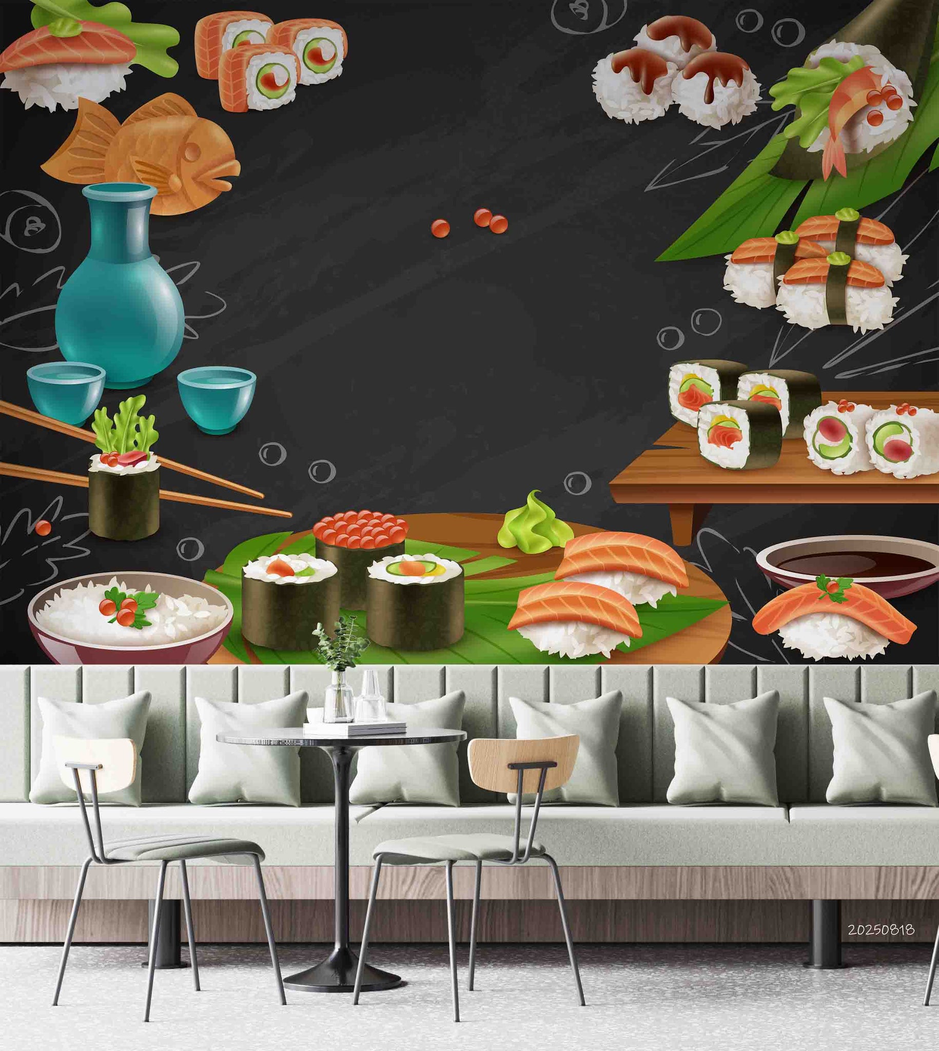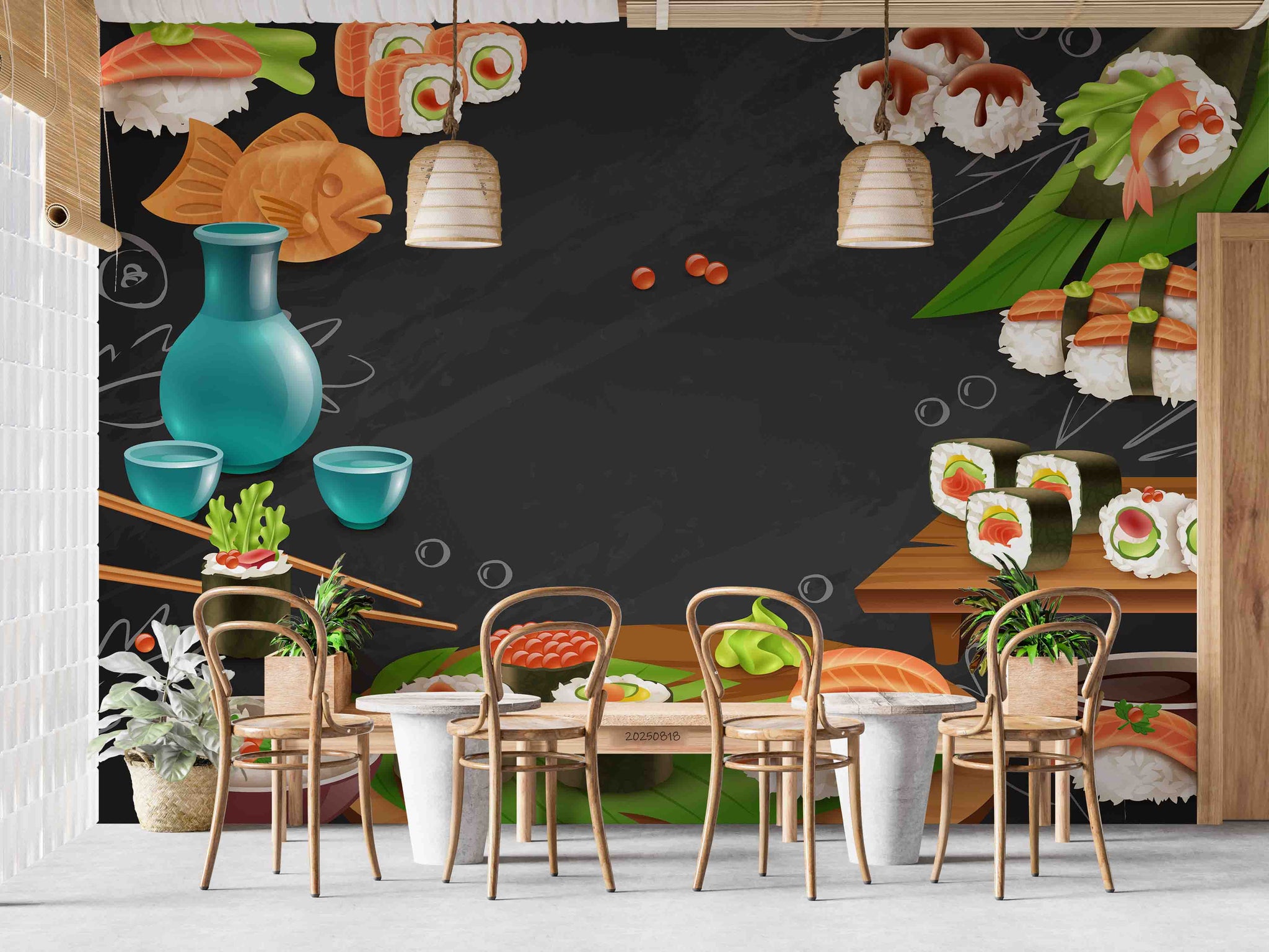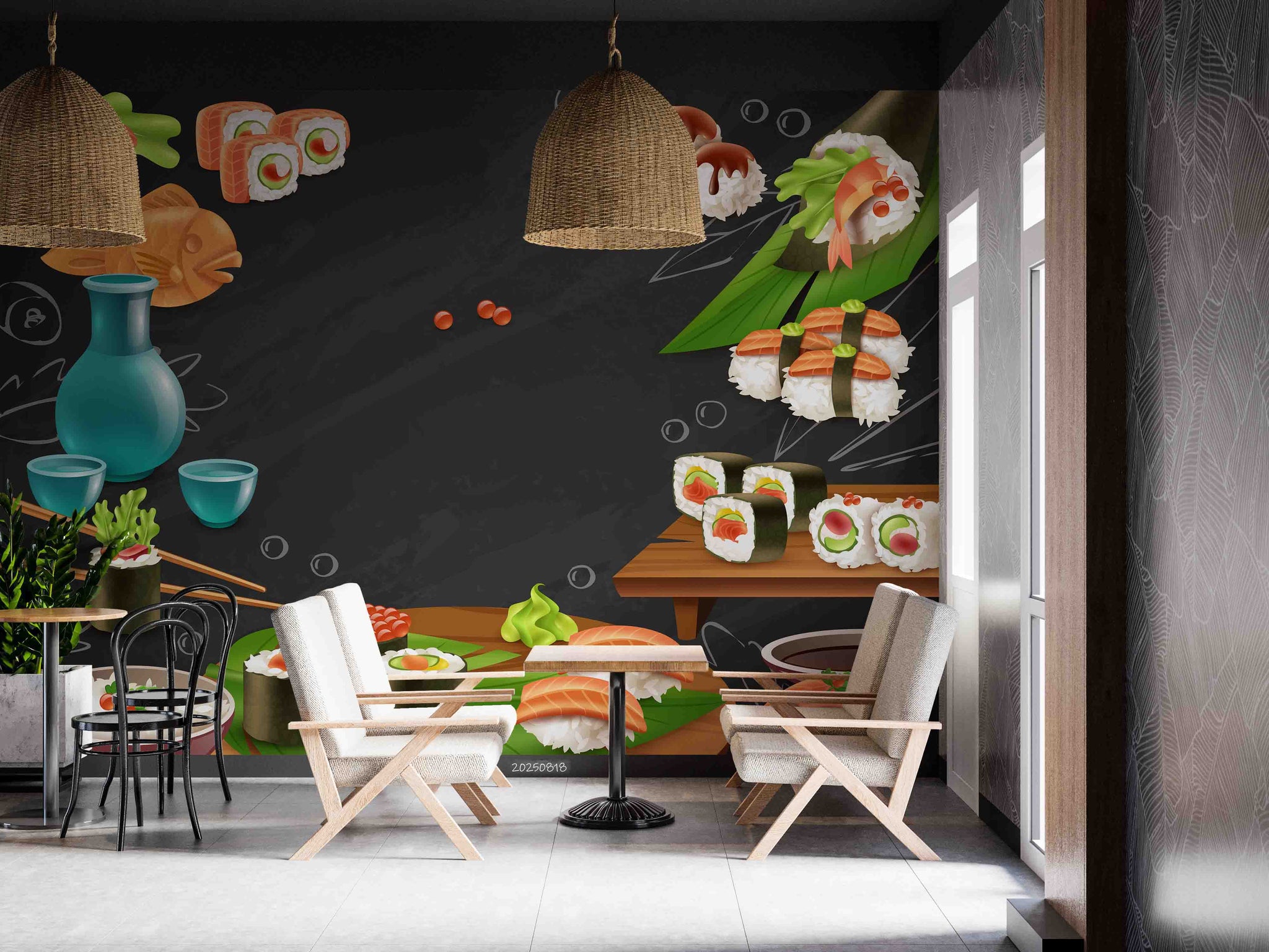 3D Restaurant Snack Bar Diner Fast Food Japanese Sushi Wall Mural Wallpaper 4
