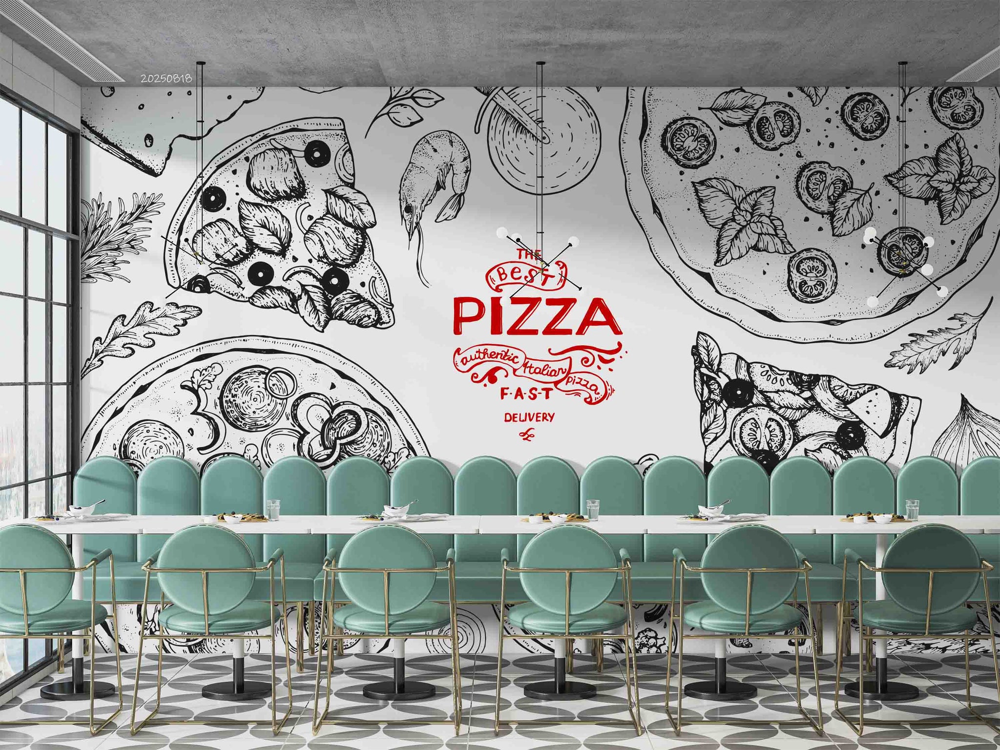 3D Restaurant Snack Bar Diner Fast Food Pizza Wall Mural Wallpaper 46